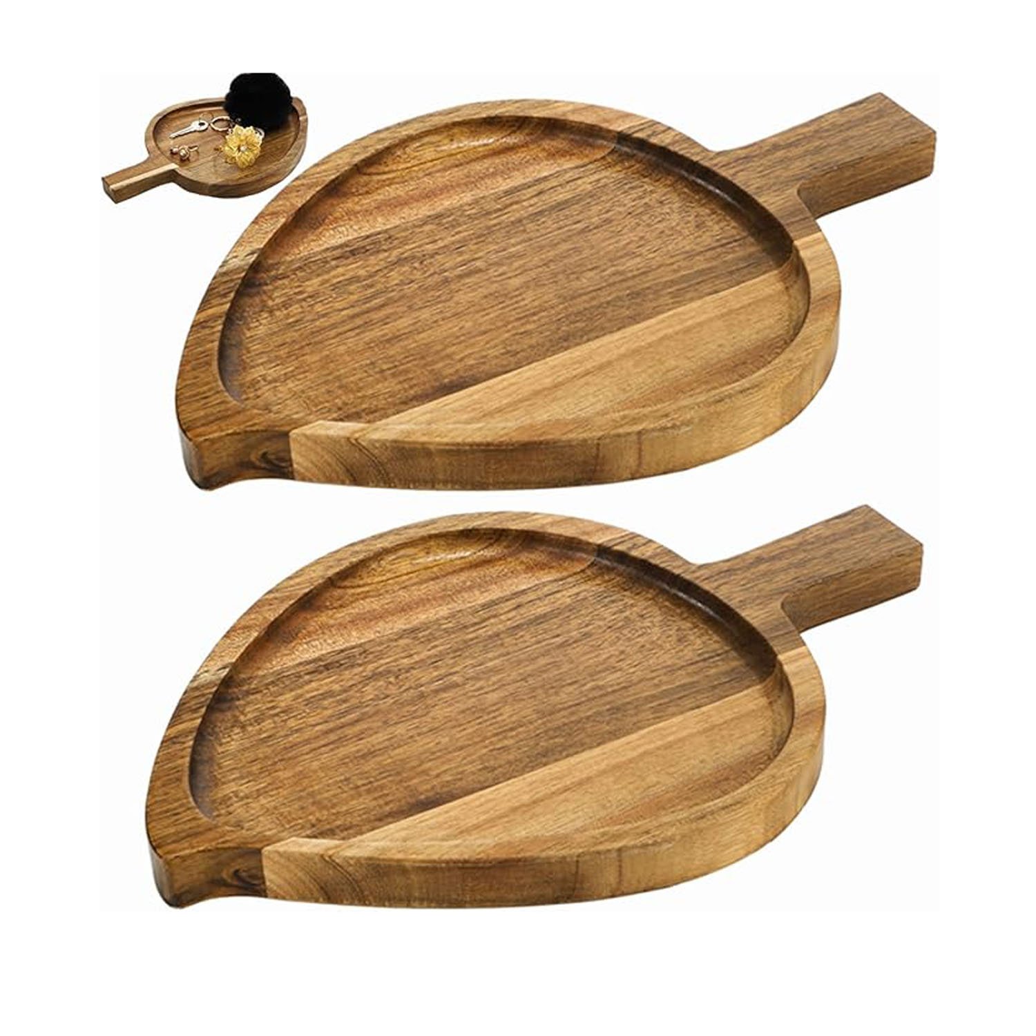 Set 2 Acacia Wood Serving Trays 11 Inch Rustic Leaf Shaped Solid Wooden Platters for Appetizer Food Decorative Wooden Plate