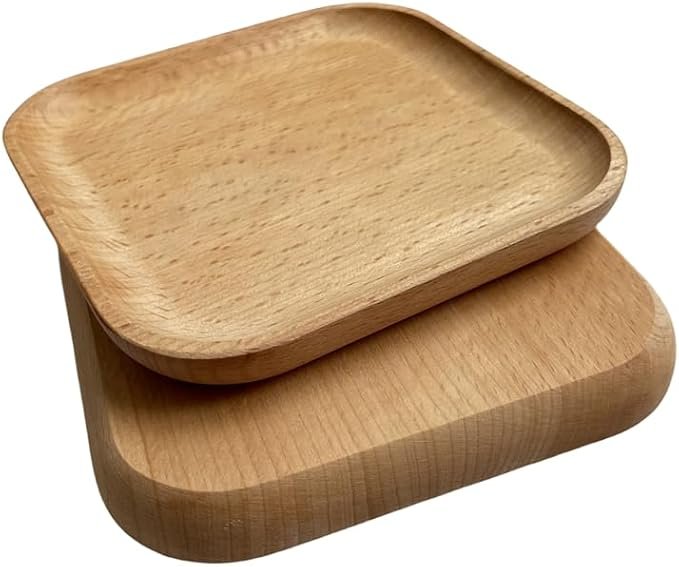 Set 2 Natural Wood Square Decorative Trays 5”X5” Tableware Serving Tray for Cake Coin Storage Wooden Cheese Plate Dessert Tray