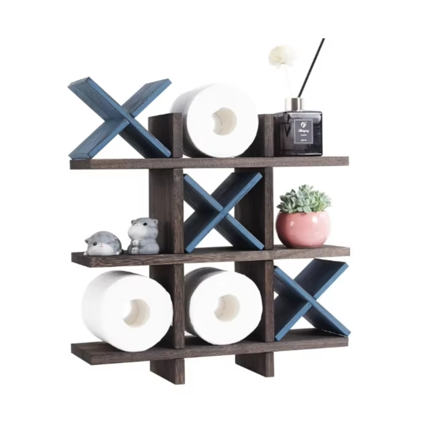 Dark Brown Funny Toilet Paper Holder with Storage Farmhouse Toilet Paper Organizer Wall Mount Or Freestanding Wooden Shelf
