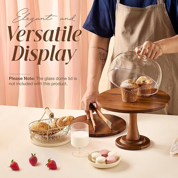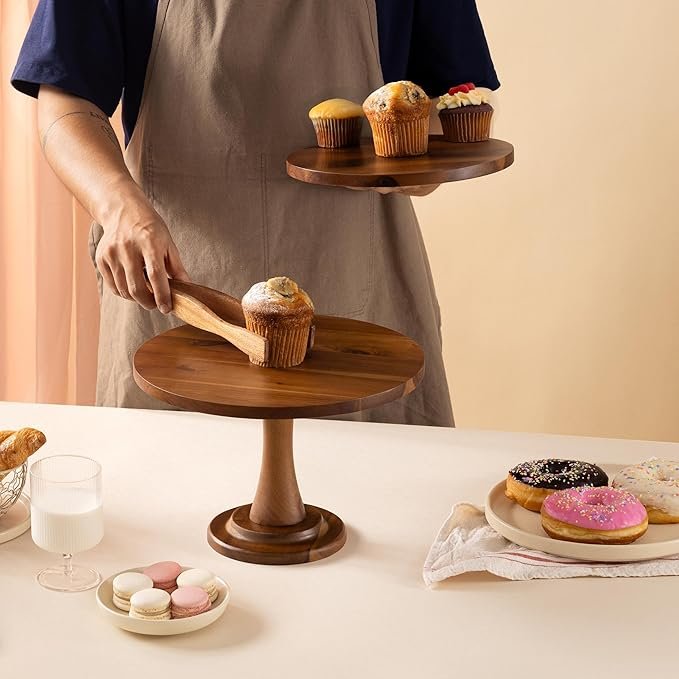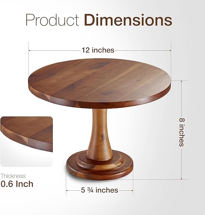 - Multifunctional Use: Beyond just a cake plate, this versatile stand doubles as a charcuterie board, cupcake stand, or wooden tray for savory and sweet treats alike. Perfect for party platters, wedding dessert displays, or decorative food presentations, it effortlessly adapts to both casual and formal settings