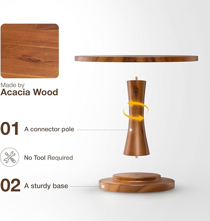 - Easy to Assemble, Washable: By screwing the stand base to the cake plate, you can assemble the stand. The whole installation process can be completed in just a few minutes. It is recommended that wood products are not soaked and should be thoroughly dried after washing This exquisite cake stand is expertly crafted from premium Acacia wood, celebrated for its stunning natural patterns and exceptional durability. Finished to perfection with a rustic charm, it effortlessly enhances any occasion—from elegant wedding dessert tables to casual kitchen counters or birthday party spreads. Designed with versatility in mind, this stand offers ample space for showcasing a variety of treats, including cakes, cupcakes, pies, and cookies. It serves not only as a sophisticated dessert stand but also as a functional food riser, ideal for elevating your party plates or acting as a striking centerpiece at catering events and receptions. Embrace its multifunctional use as it doubles as a charcuterie board or wooden tray for a delightful presentation of both savory and sweet snacks. This cake stand is perfect for any occasion, making it a vital addition to your celebrations, whether you’re hosting weddings, birthday parties, or anniversary gatherings. With a simple assembly process and easy maintenance—just screw the stand base to the plate and avoid soaking—the rustic charm of this cake stand will transform your food presentations into a beautiful and memorable centerpiece.