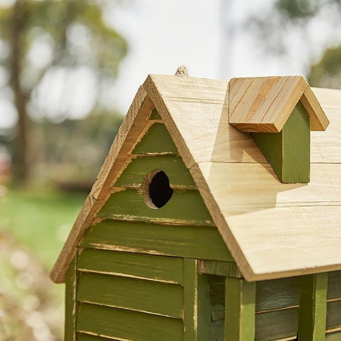 - Ready to Decorate: Removable clean-out panel on the back provides easy access for cleaning, the unique cottage birdhouse will accent your home and garden. Suitable for dove, blue bird, finch, wren, sparrow, swallow, hummingbird, etc. Add fun to your backyard and offer a safe and cozy home for your lovely feathered friends.