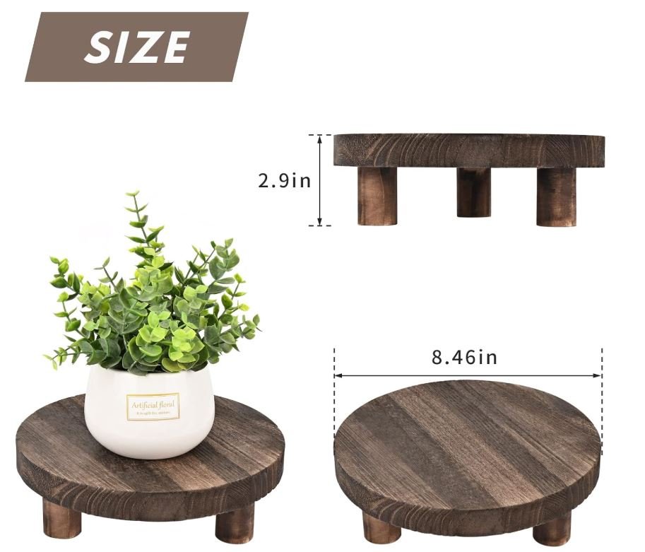 - Versatile Stands–Our wooden display stands are suitable for holding potted plants, flame less candle, small lamps, soap dispenser, small bowl for jewelry. it’s perfect for table top decoration and your flower pot, fish tanks, small artwork all can be put on.