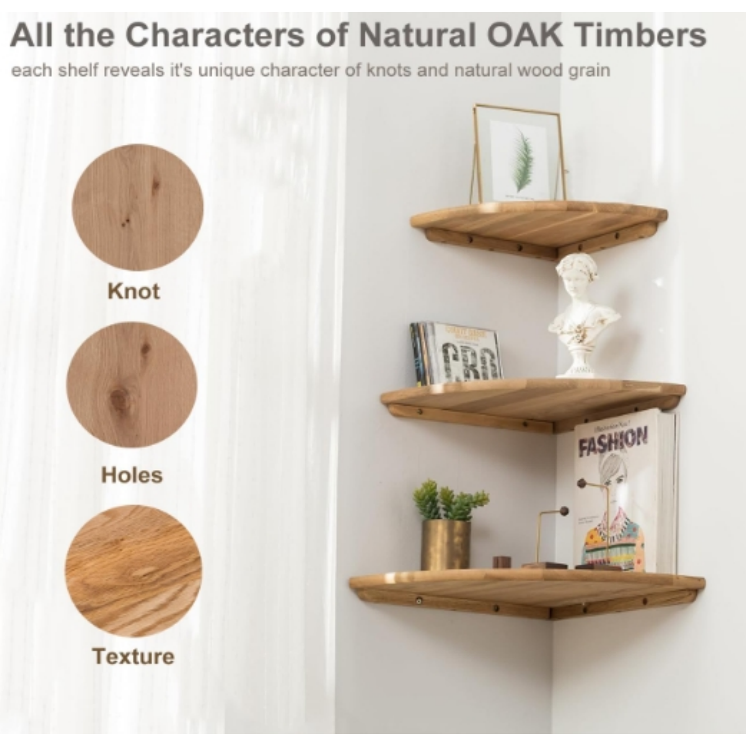 Looking for a way to maximize corner space while adding a touch of warmth and sophistication? Our 7-inch Solid Oak Wood Floating Corner Shelf is the perfect solution. Crafted from high-quality oak, this shelf offers a blend of durability and aesthetic appeal, making it an ideal addition to any room in your home.