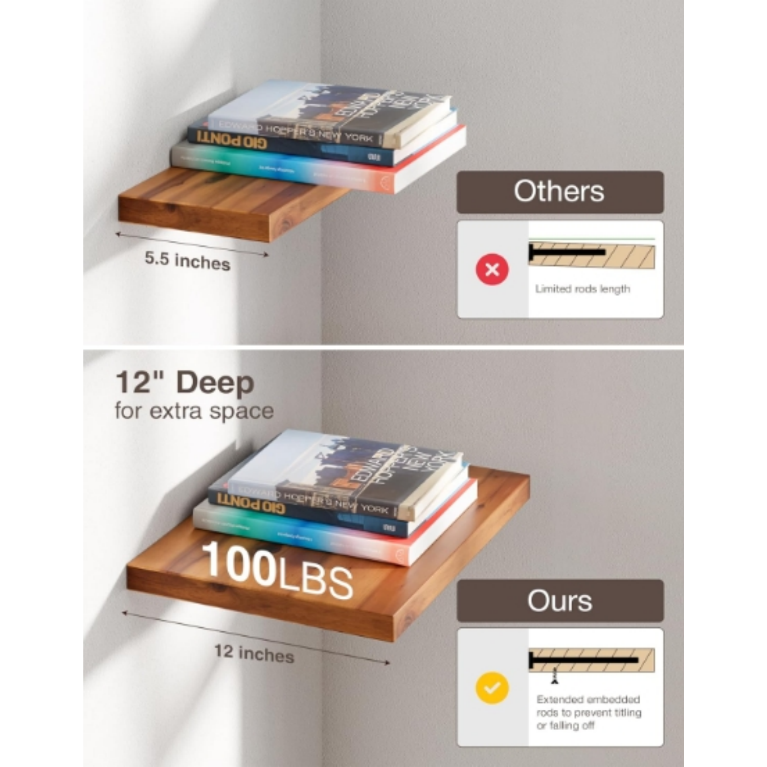 Transform Your Space with Acacia Deep Floating Shelves