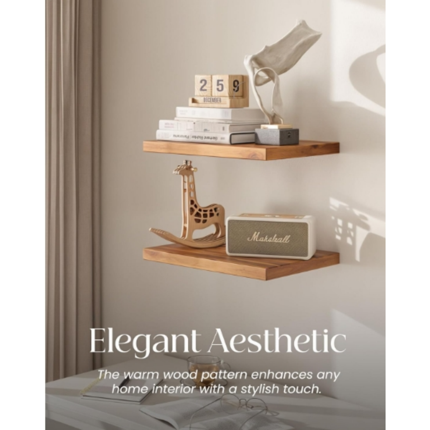 The Acacia Deep Floating Shelves combine beauty and resilience to enhance your home. The rich, natural wood tones create an elegant finish that harmonizes effortlessly with any décor style, from minimalist to rustic. These shelves are engineered for strength, capable of supporting various items while maintaining their sleek floating appearance. Perfect for any bedroom, living room, or even office spaces, they elevate functionality without compromising on design.