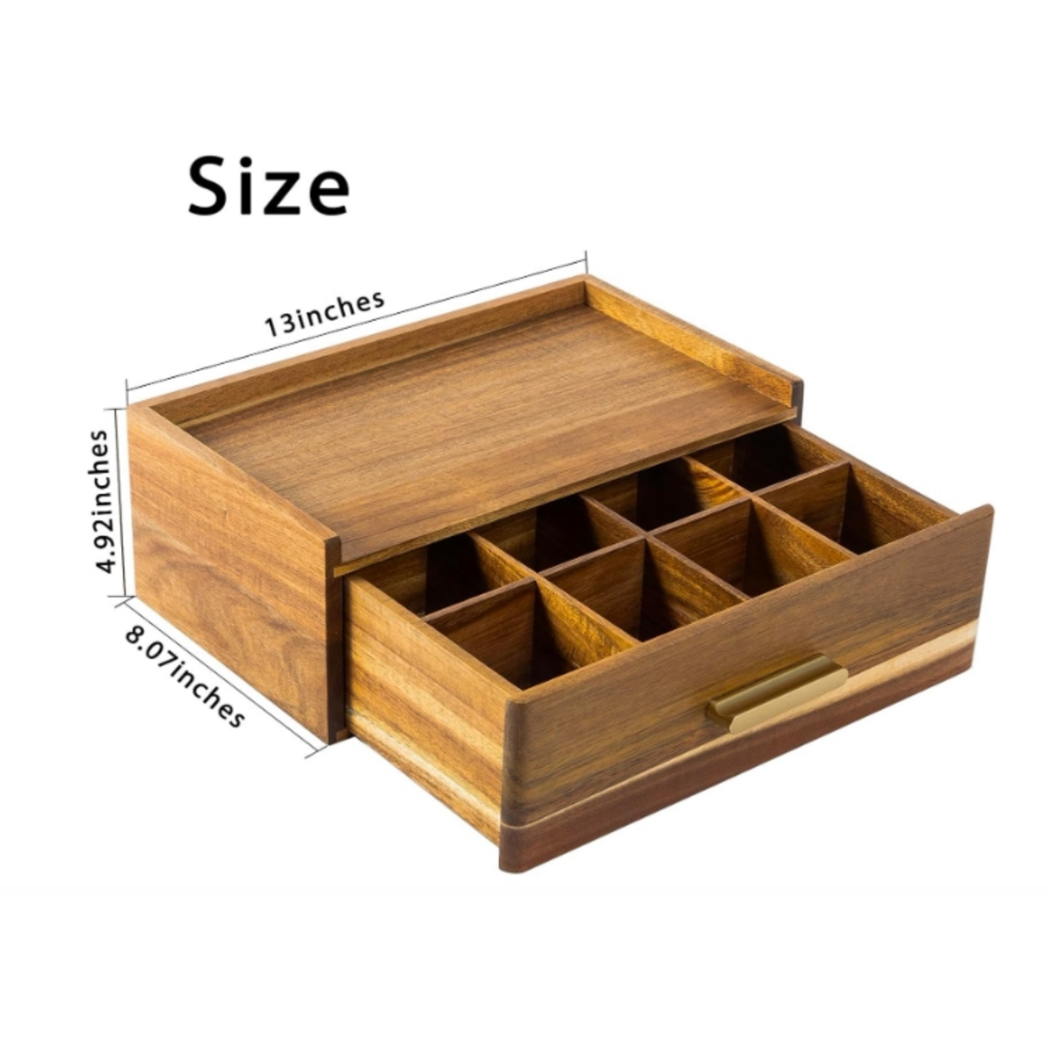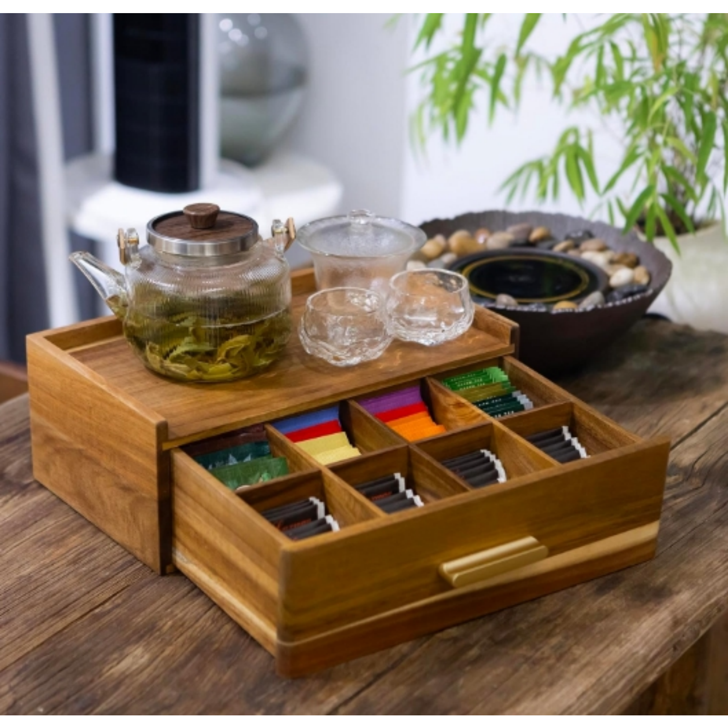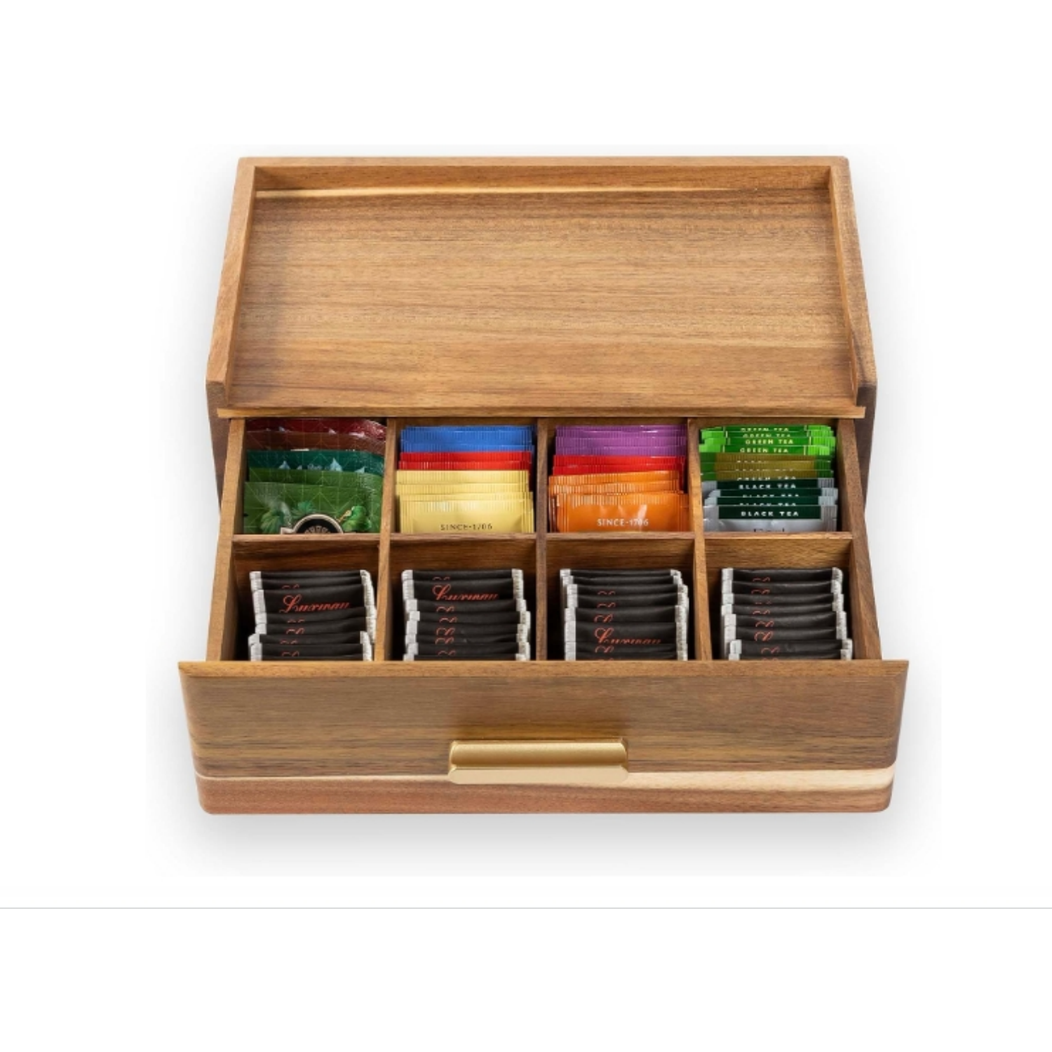 Experience the ultimate way to store and organize your tea bags with our Acacia Wood Tea Bag Organizer. This thoughtfully designed tea caddy combines style and functionality, offering a sophisticated touch to your kitchen or pantry. Crafted from high-quality acacia wood, this storage box is not only durable but also eco-friendly. Its sleek design blends seamlessly with any decor, making it the ideal solution for tea enthusiasts seeking both practicality and elegance.
