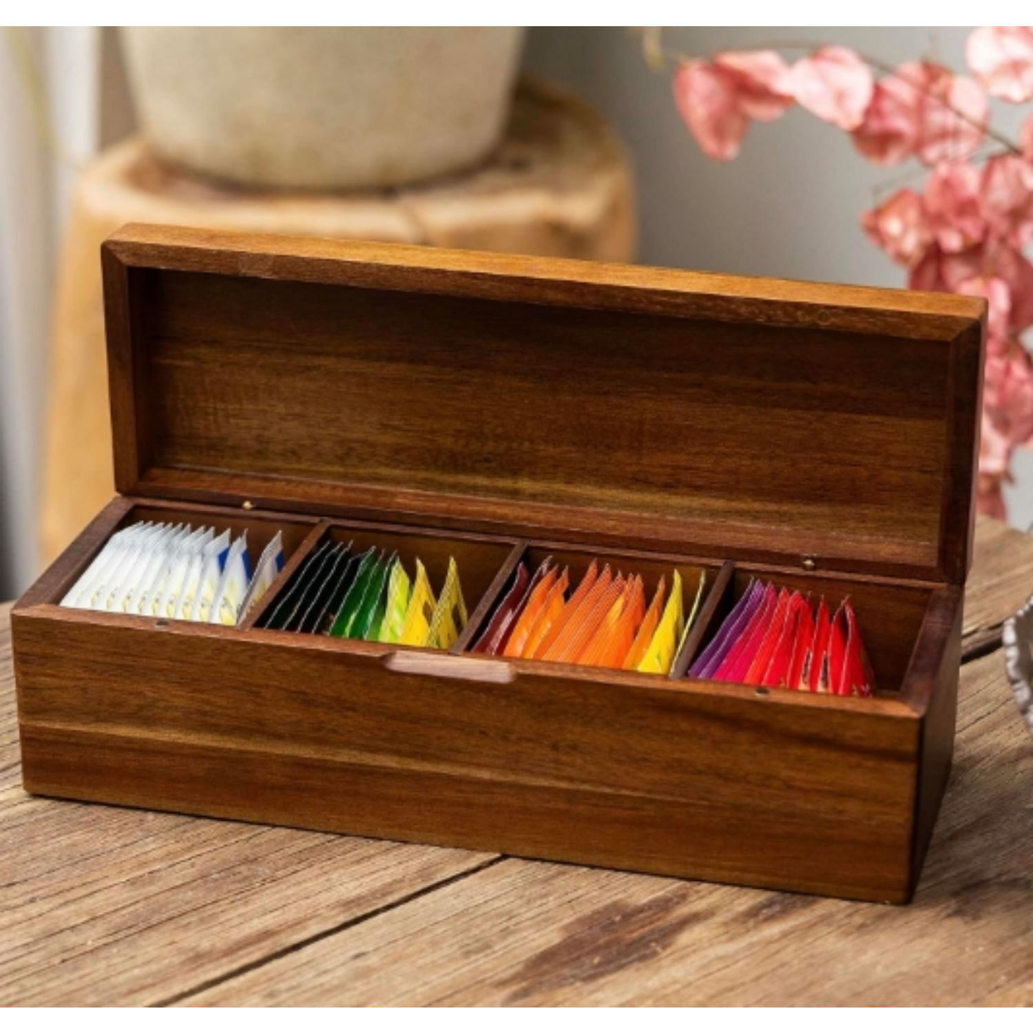 If you are a tea lover, you know the importance of having a dedicated space to organize your favorite blends. The Acacia Wooden Tea Bag Organizer is designed to combine elegance and practicality in one stunning piece. Crafted from natural acacia wood, this organizer brings a touch of sophistication to your kitchen, dining room, or pantry, while keeping your tea collection easily accessible and neatly stored.
