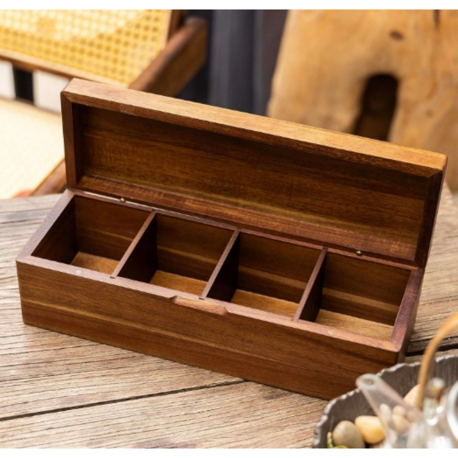 Handcrafted from high-quality acacia wood, this tea bag storage box offers durability and exquisite aesthetics. The smooth finish highlights the rich grain patterns of acacia wood, making it a delightful addition to any space. Its versatile design features multiple spacious compartments, allowing you to store a variety of tea bag sizes or tea packets with ease. Whether you enjoy herbal teas, green teas, or premium blends, this organizer is perfect for keeping your collection in order while enhancing your room's decor.