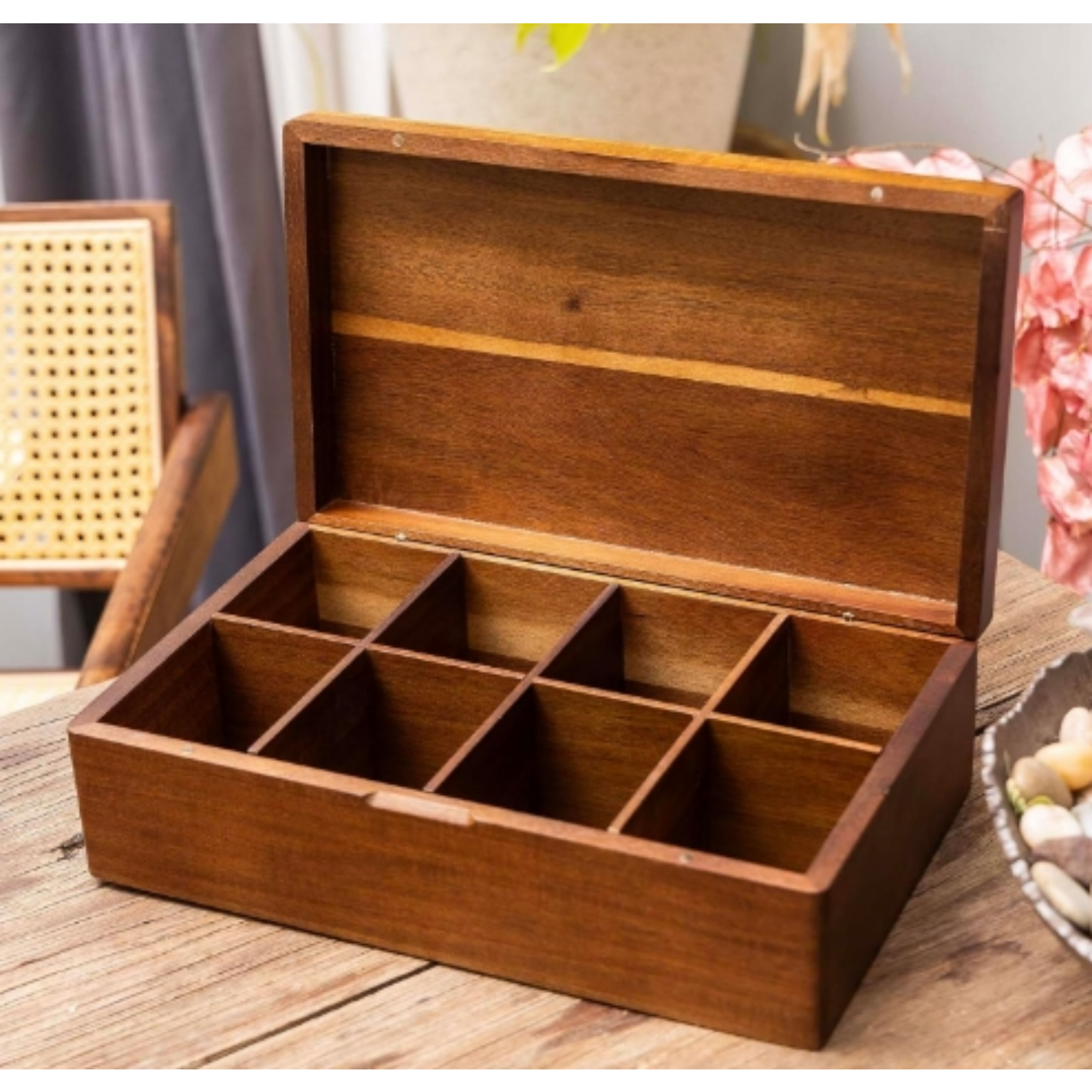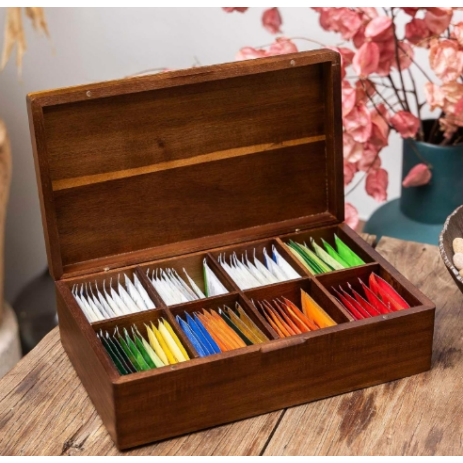 Elevate your tea experience with our Acacia Wooden Tea Bag Organizers. Crafted from rich, durable acacia wood, these beautifully designed tea packet storage boxes offer both style and functionality. Each tea caddy is meticulously crafted to hold various tea bags, keeping your favorite blends neatly organized and easily accessible. The natural wood grain adds a touch of sophistication to your kitchen or tea corner, making it an ideal addition for any tea enthusiast. Whether you're entertaining guests or enjoying a quiet moment, our tea bag holder containers provide the perfect way to display your collection while keeping them fresh and ready to brew.