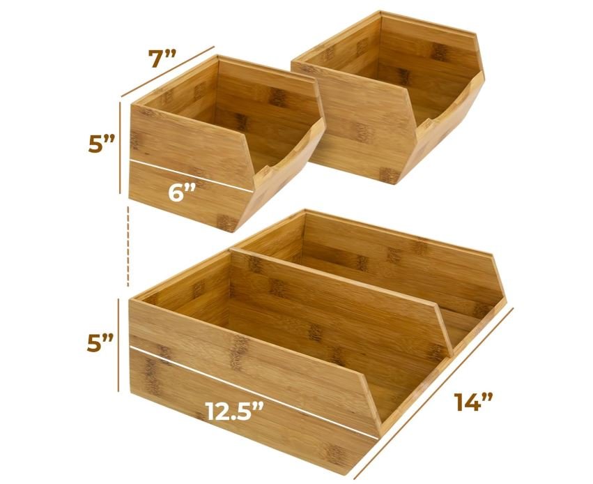 Bamboo Pantry Storage Bins - Stackable Baskets, Potato and Onion Storage for Pantry Organization, Set 3 Pieces