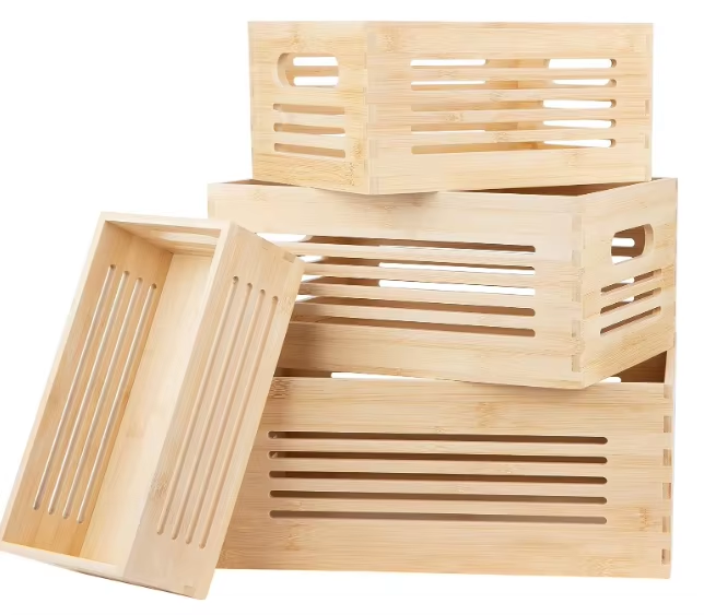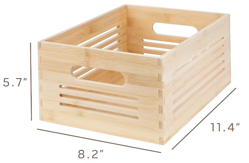 Bamboo Wooden Storage Box Rustic Farmhouse Look Wood Crate for Storage Decorative Closet Cabinet and Shelf Basket Organizer