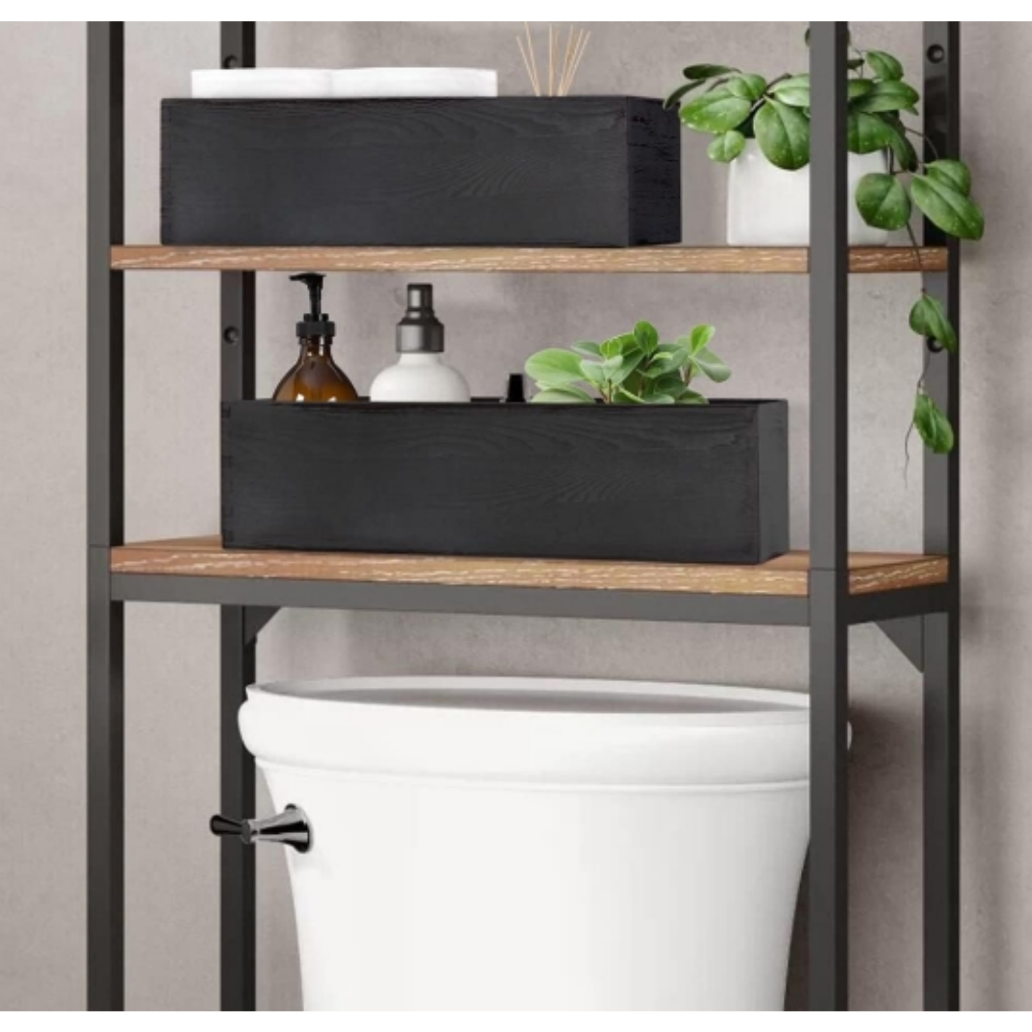 1 review for Bathroom Decor Box, 2 Pack Wooden Toilet Paper Holder, Black Toilet Tank Storage Basket