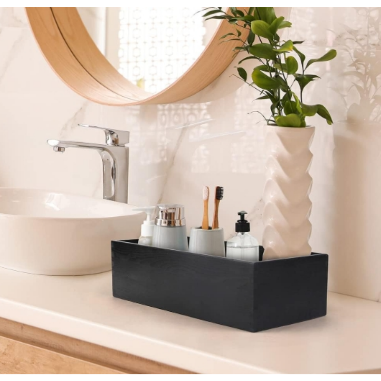 Elevate your bathroom decor with our 2 Pack Wooden Toilet Paper Holder. Each stylish black toilet tank storage basket is designed to blend functionality with rustic charm. Perfect for keeping toilet paper neatly stored while adding a touch of elegance to your space. Made from durable wood, these holders not only organize your essentials but also enhance the aesthetic of your bathroom, making them a must-have for any home.