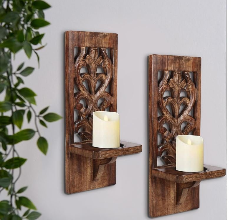 - Intricate detail with hand carving creates a truly unique furnishing accent. wall candle holder is a nice gift for people who likes modern, rustic or farmhouse style. It will be a unique gift for your friend or family on Thanksgiving Day, and other important events.Elevate your home decor with this exquisite set of 2 handmade turned candle pillars crafted from high-quality solid Mango wood. Finished with an antique distress look, these candle holders exude traditional farmhouse elegance, making them a perfect fit for a variety of design settings—from beachside retreats to mountain cabins and rustic farmhouses. Ideal for displaying your favorite pillar and votive candles, they add a decorative touch to any room. Whether for everyday use, weddings, or special events, these intricate candle pillars are perfect for creating a cozy atmosphere for aromatherapy, spas, Reiki, or meditation. Easy to clean with a soft dry cloth, each piece features unique hand-carved details that make it a one-of-a-kind furnishing accent. Gift them to friends or family who appreciate modern, rustic, or farmhouse styles; they make a thoughtful and unique present for Thanksgiving and other special occasions.Elevate your home decor with our exquisite set of 2 handmade turned candle pillars, crafted from high-quality solid Mango wood and finished with an antique distress touch. These stunning candle holders showcase graceful designs that embody traditional farmhouse elegance, making them perfect for a variety of design settings—from cozy beach houses to rustic mountain retreats. Ideal for everyday use and special occasions alike, these decorative accents enhance your space with warmth and charm, whether for romantic dinners, weddings, or serene aromatherapy sessions. Each piece is uniquely carved, ensuring that no two candle pillars are alike, making them an exceptional gift choice for anyone who appreciates modern, rustic, or farmhouse styles. Delight your loved ones with a thoughtful gift for Thanksgiving or any significant event, and enhance your sacred spaces with these beautiful candle holders.Elevate your home decor with this exquisite set of 2 handmade turned wooden candle pillars, crafted from high-quality solid Mango wood and finished with an antique distress texture. These pillars are a stunning representation of traditional farmhouse elegance, designed to effortlessly showcase your favorite pillar and votive wax candles. Whether you have a beach, mountain, or rustic farmhouse interior, these candle pillars add a touch of charm and warmth to any space. They’re perfect for everyday use and special occasions alike, including weddings, events, and mindful practices like aromatherapy, spa days, and meditation. Each piece features intricate hand-carved details, ensuring that no two are alike, making them a truly unique addition to your home. A thoughtful gift for anyone who appreciates modern, rustic, or farmhouse styles, these candle pillars are a perfect choice for special occasions like Thanksgiving and other significant celebrations.Introducing our set of 2 Handmade Mango Wood Candle Pillars, expertly crafted from high-quality solid mango wood with a charming antique distress finish. These unique candle holders feature graceful designs that embody traditional farmhouse elegance, making them perfect for enhancing any decor style—from cozy beach homes to rustic mountain retreats. Ideal for showcasing pillar and votive candles, they add a decorative touch to your living room, dining area, or any special event. Perfect for everyday use, weddings, aromatherapy sessions, Reiki practices, and meditation, these candle pillars are more than just decorative items; they bring warmth and tranquility to any space. Intricate hand carving adds to their uniqueness, making them an exceptional gift for anyone who appreciates modern, rustic, or farmhouse aesthetics. Surprise a friend or loved one with this thoughtful gift on Thanksgiving or any meaningful occasion, and let them experience the beauty of handmade craftsmanship.