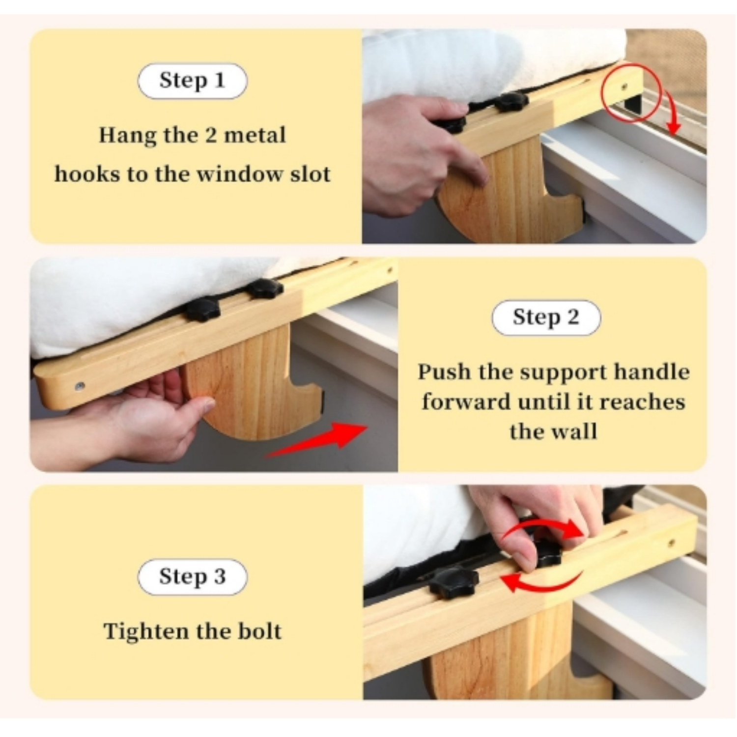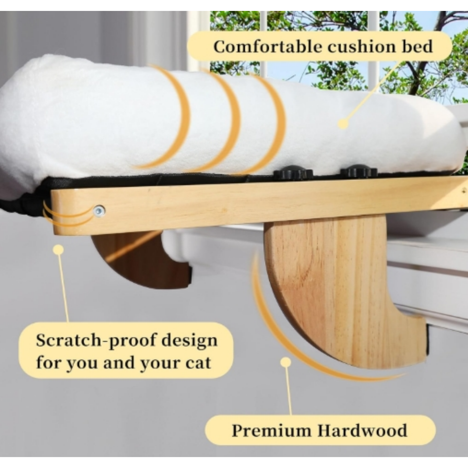 Transform your feline's lounging routine with our Adjustable Cat Window Perch. Designed for optimal comfort and stability, this cat window hammock features a robust hardwood frame that securely attaches to your windowsill, allowing your cat to bask in the sun and enjoy the outdoor view. The plush, fluffy cushion provides ultimate relaxation, making it the perfect spot for your cat to nap or watch the world go by. Easy to install and adjust, this window perch is a must-have for every cat lover looking to pamper their furry friend.