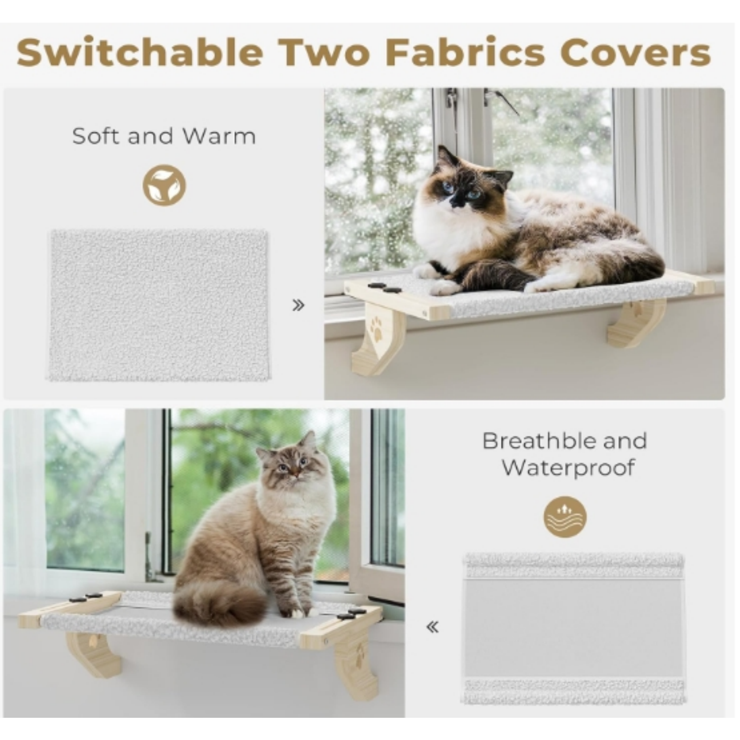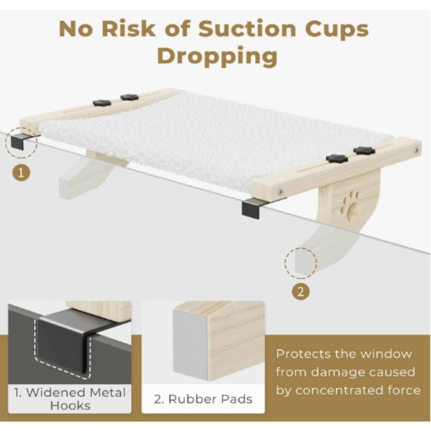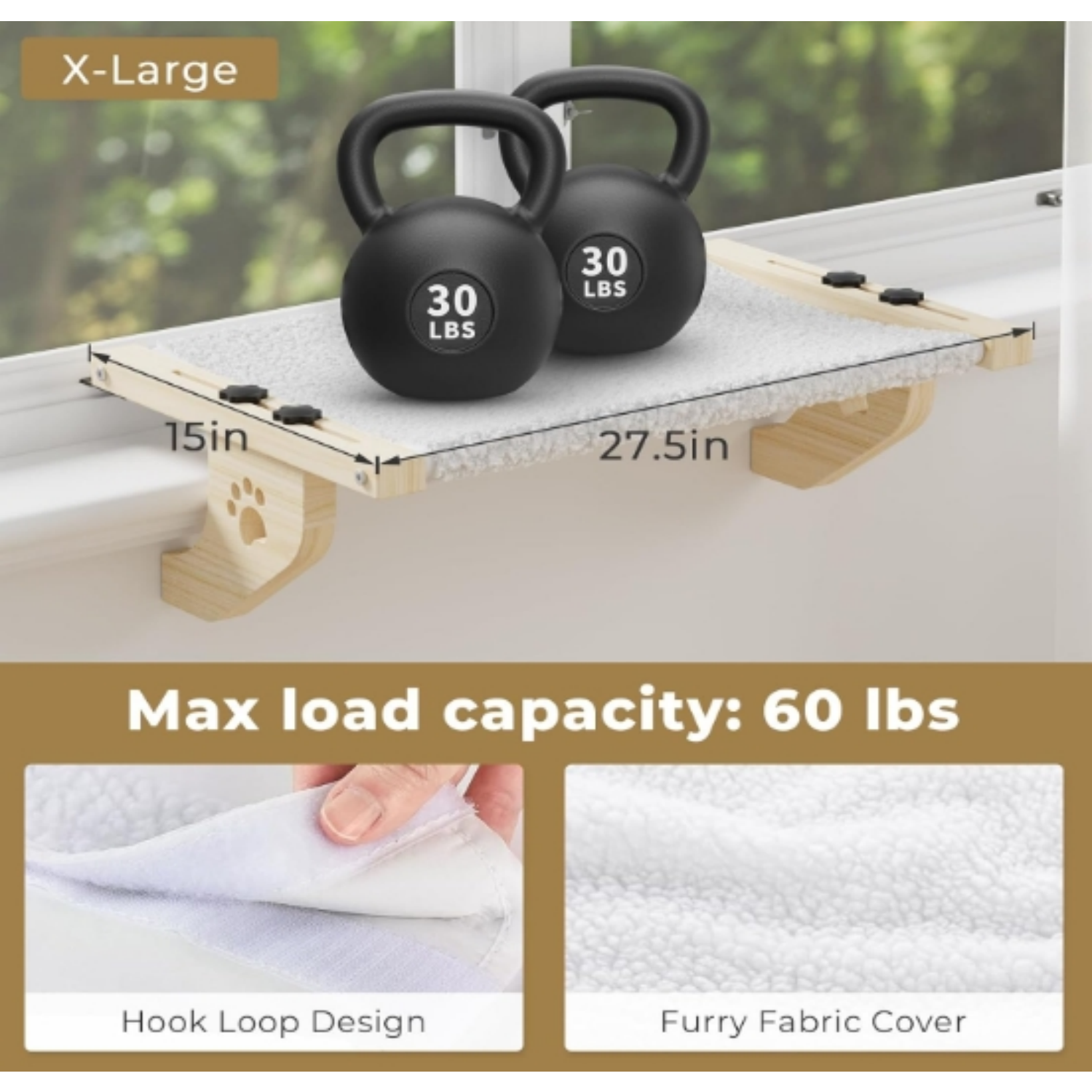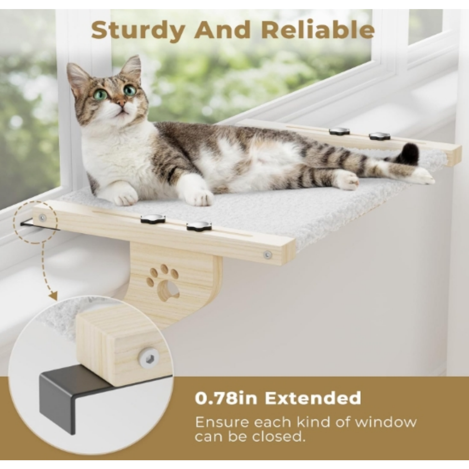 1 review for Cat Window Perch Cat Window Hammock with Wood & Metal Frame for Large Cats, Adjustable Cat Perch for Windowsill