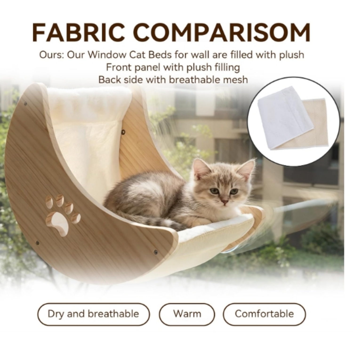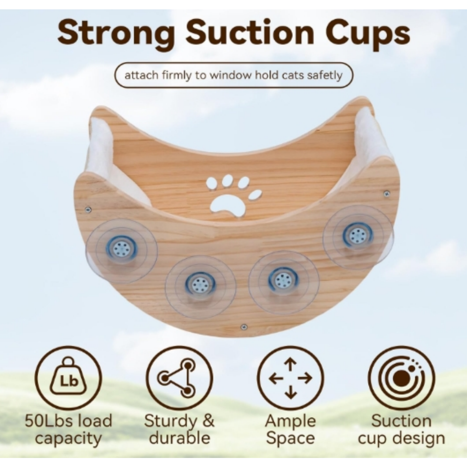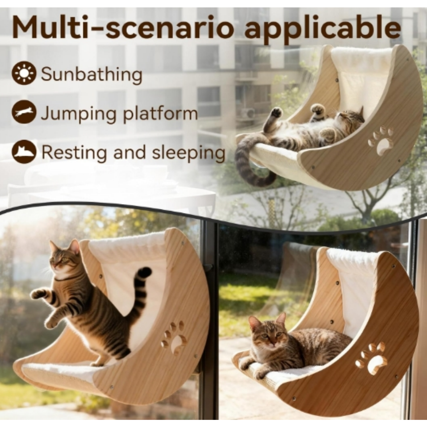 Give your feline companion a luxurious lounging experience with the Cat Window Perch Hammock Bed. This thoughtfully designed cat furniture combines practicality and elegance, creating the ideal resting spot for indoor cats. Whether your furry friend loves to soak up the sun, gaze outside, or nap in comfort, this wooden moon cat shelf with strong suction cups ensures stability and security, making it a must-have for any cat owner.