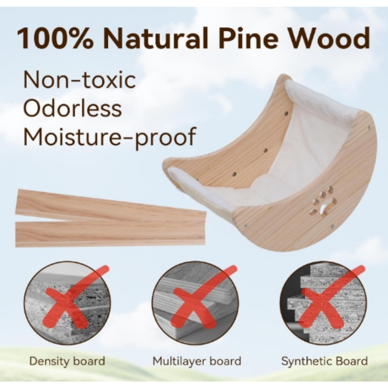 This versatile cat furniture accommodates cats of various sizes and weights. Its spacious and ergonomic design means it’s perfect for everything from napping to engaging with their environment. Whether your cat is energetic, curious, or enjoys long, peaceful naps, this perch offers the perfect vantage point to satisfy their instincts. Plus, its sleek wooden moon design seamlessly blends into any home decor style, adding an elegant touch to your living space.