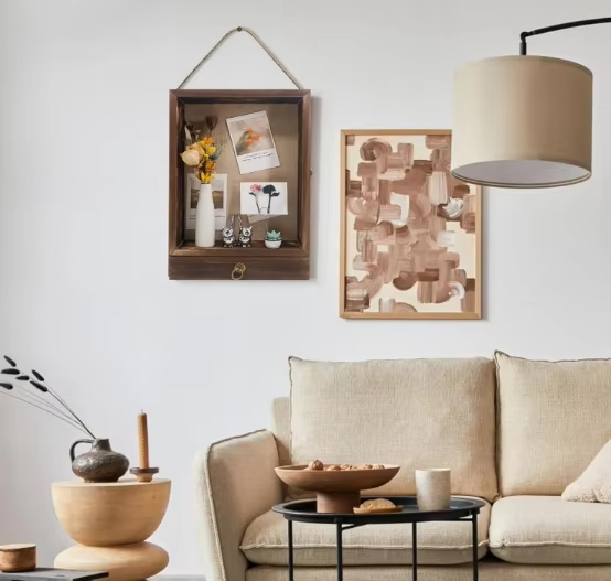 Shadow Box Frame, Sturdy Rustic Memory Display Case with Linen Back and Removable ShelvesShadow Box Frame, Sturdy Rustic Memory Display Case with Linen Back and Removable Shelves