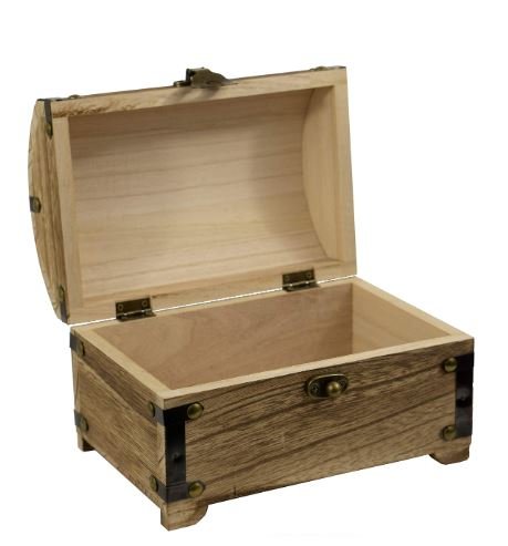 Decorative Vintage Wood Treasure Chest, 8.3x5.5x5.5 inches with 90 Degree hinged lid, Old-Fashioned Design, Metal Outline and Buckle [Keepsake Box/Jewelry Box/Toy Treasure Chest]