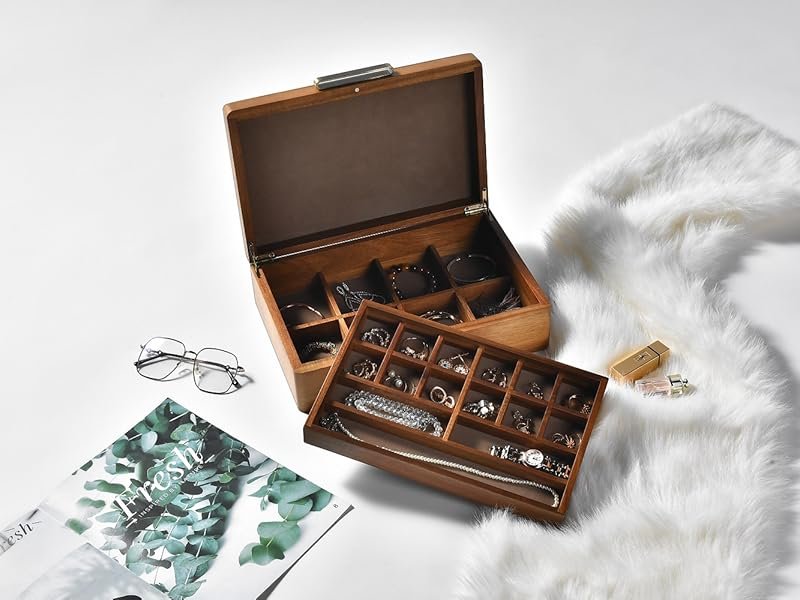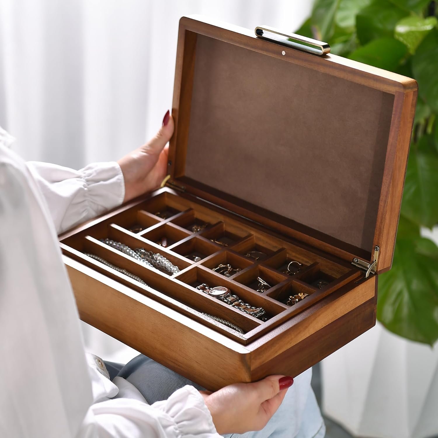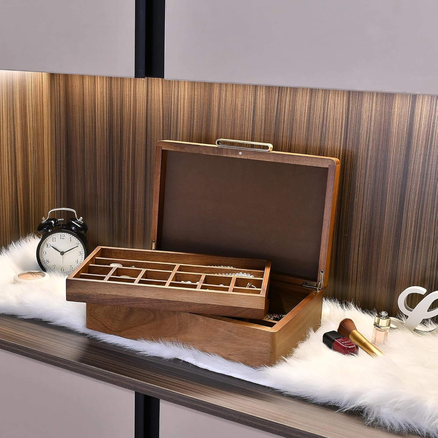 Divisible Wooden Jewelry Box Organizer Case for Necklaces Earrings Rings Bracelets-for Men and Women