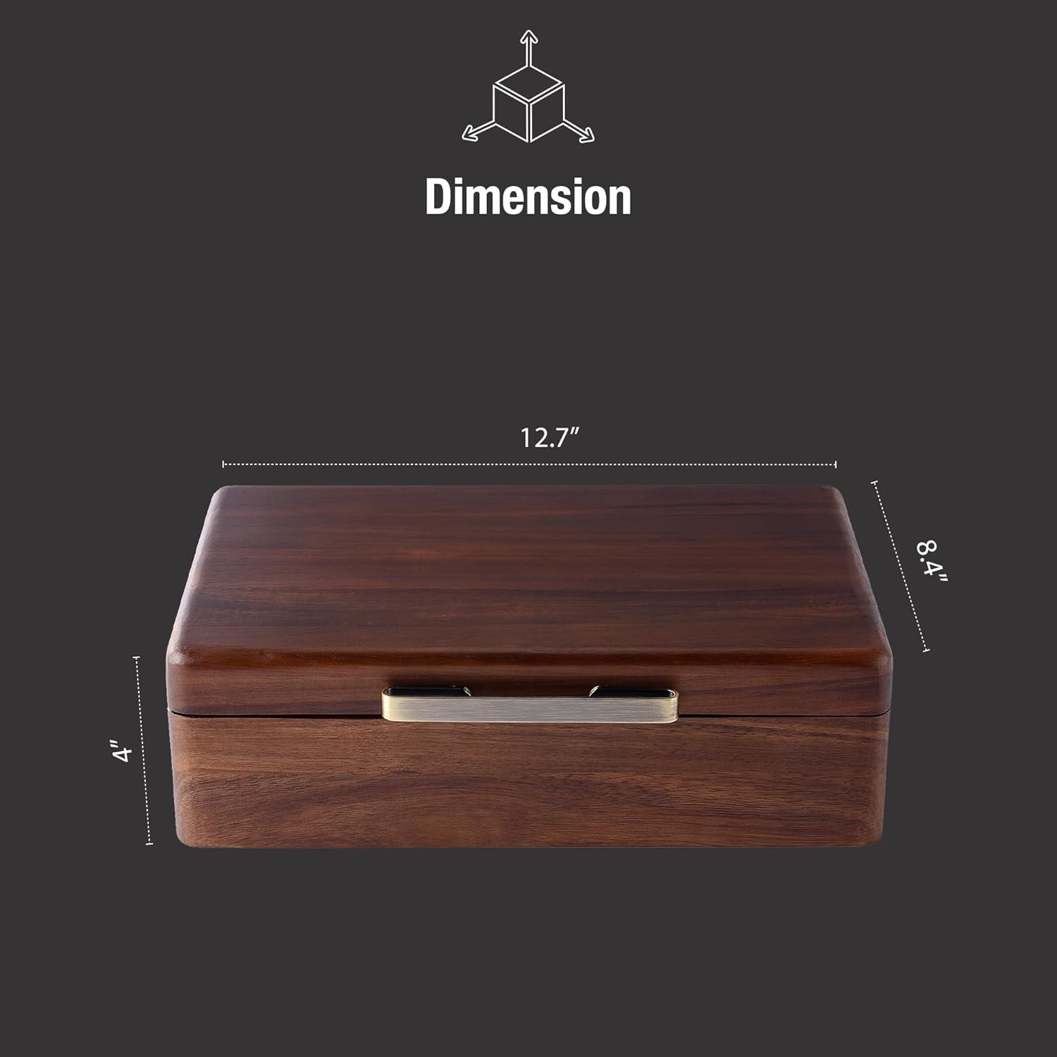 • ADVANCED QUALITY & CLASSICAL DESIGN: Shanik jewelry box is made of highly durable and natural Acacia wood while being covered with the softest and smoothest velvet inside to keep all your jewelry safe. Classical and, thus, always up-to-date design makes this box gorgeous and timeless. A comfy handle helps open the lid with no effort.