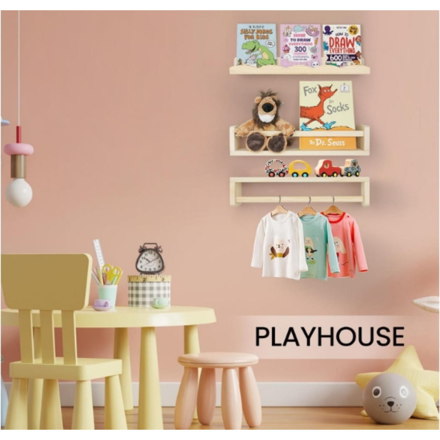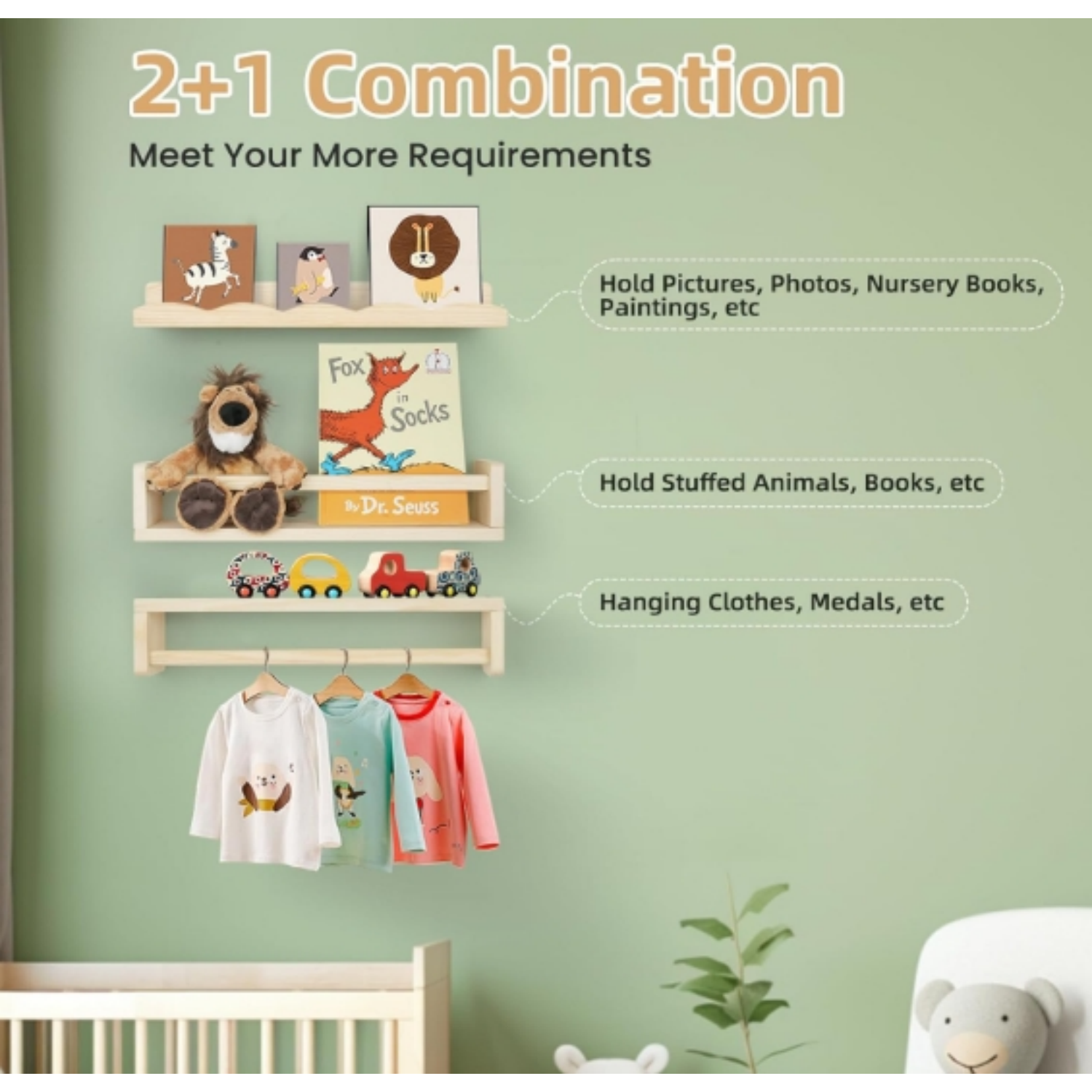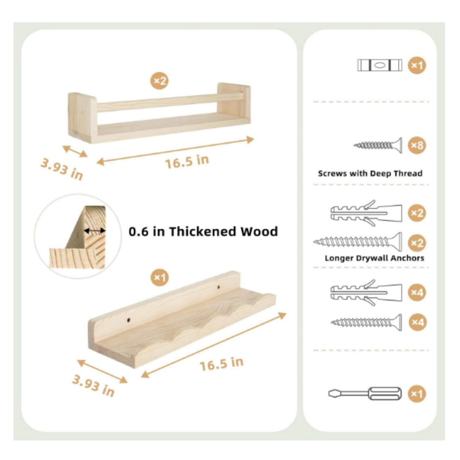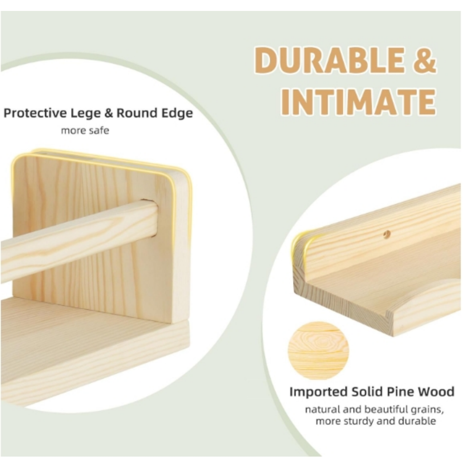 Be the first to review “Floating Book Shelves for Wall, 16.5″ Natural Wood Nursery Shelves for Book Storage, Solid Pine Wooden Floating Wall Bookshelf for Bedroom”