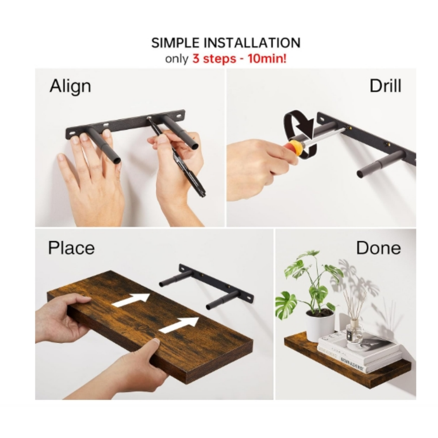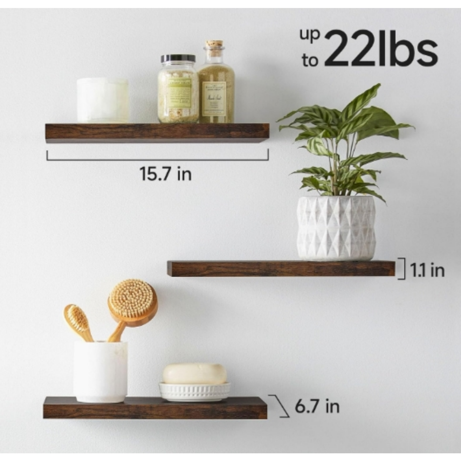 Crafted from high-quality wood, these floating shelves exude rustic beauty that blends seamlessly with modern farmhouse, industrial, or traditional decor styles. Their sturdy design ensures that they not only look beautiful but also provide reliable storage for many household items. Use them for stacking towels, arranging beauty essentials, or displaying your favorite collectibles and plants. The subtle rustic finish adds character, making them an aesthetic focal point in any room.