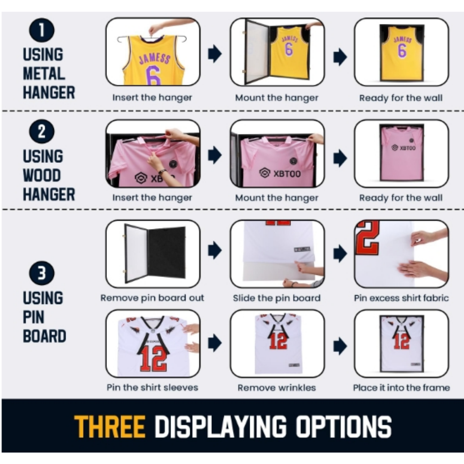Elevate your cherished sports jerseys with our Jersey Wooden Frame Display Case. Designed to accommodate both L and XL sizes, this shadow box features 98% UV protection acrylic to preserve the vibrancy of your memorabilia while showcasing it in an elegant wooden frame. Whether you're a die-hard baseball or basketball fan, this display case includes a convenient hanger, allowing you to mount it securely on your wall for an eye-catching presentation. Perfect for collectors and fans alike, it transforms your cherished sports artifacts into stunning pieces of art, ensuring they are both protected and prominently displayed.