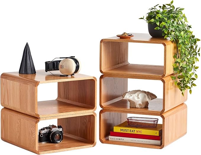 - Customizable Storage Solution: Create unlimited stacking arrangements with these modular wooden shelves. Build a small bookshelf, wide book shelf, or tall wooden bookshelves to fit your space and store various items, from books to plants.