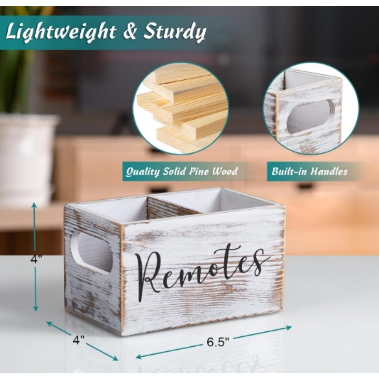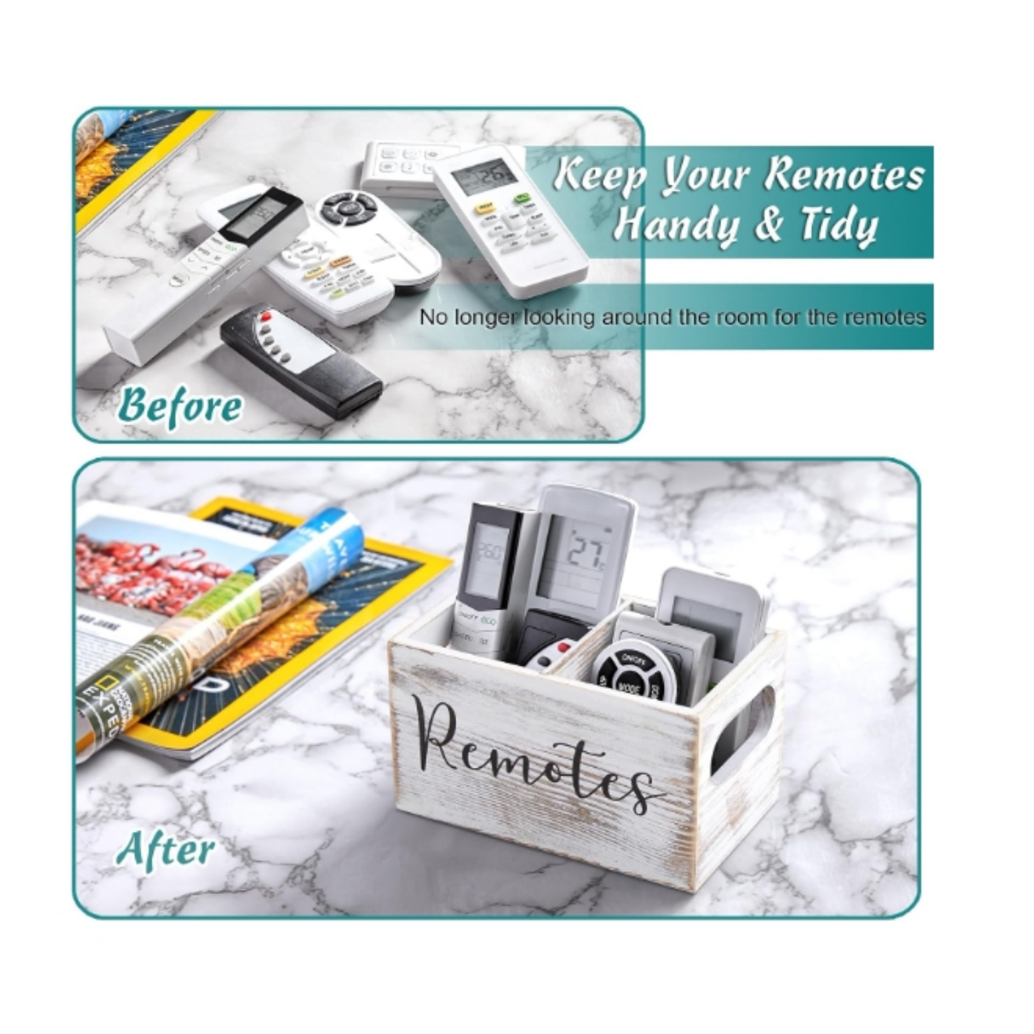 Keep your living space neat and organized with our Retro White TV Remote Holder. This charming wooden remote box features a vintage design that adds a touch of nostalgia to your decor. Perfect for your nightstand or coffee table, it securely holds multiple remotes while providing easy access. Say goodbye to the clutter of misplaced remotes and elevate your home with this functional and stylish organizer caddy.