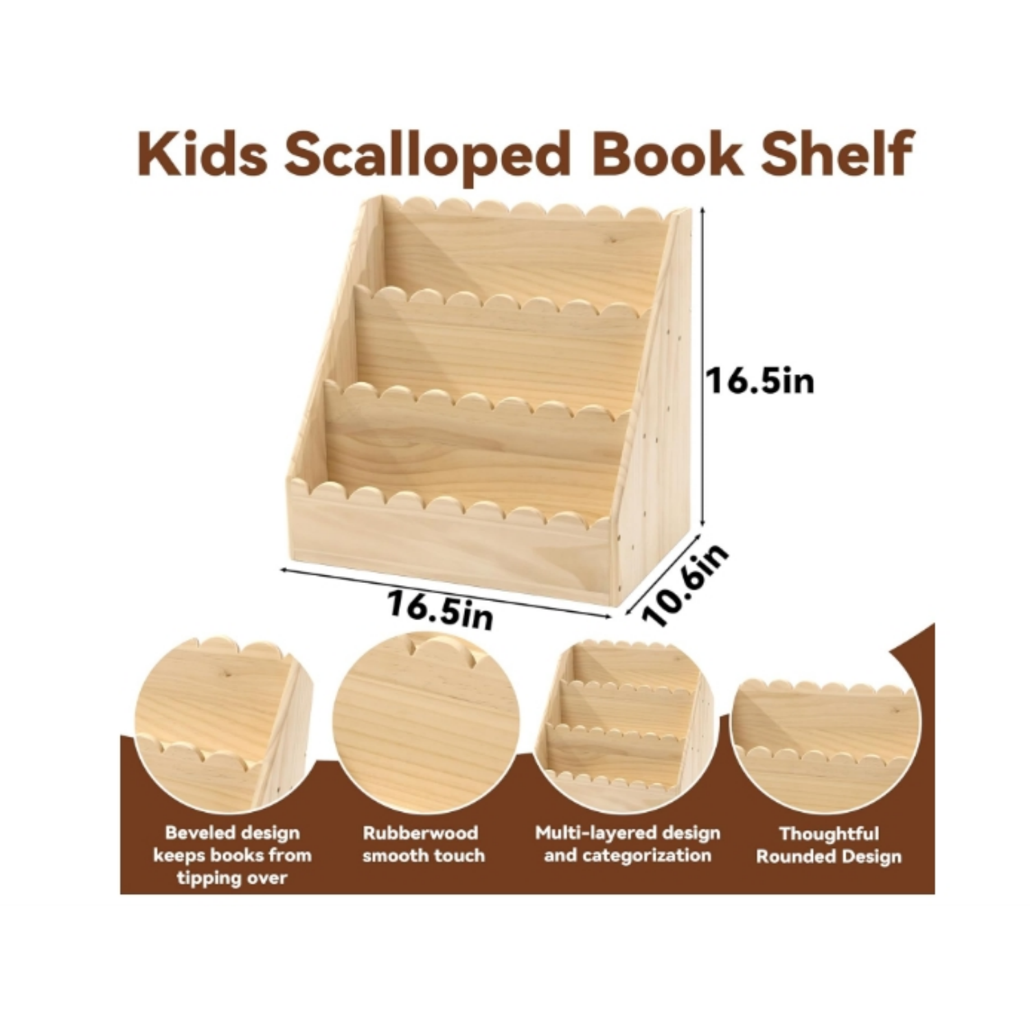 Bring fun and order to your child’s space with our 3-Tier Kids Book Shelf! Crafted with toddlers in mind, this bookshelf is the perfect height for little readers ages 1-5 to safely reach and explore their favorite stories. Its sturdy wooden build ensures durability through years of use, while the smooth, rounded edges offer added peace of mind.