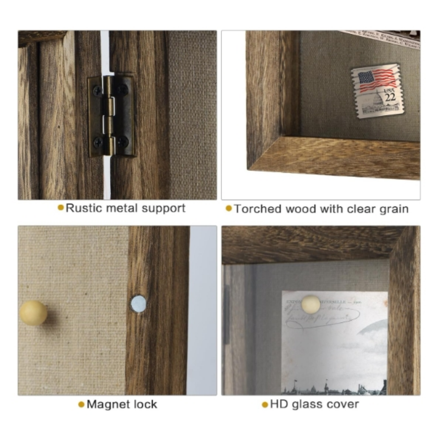 Shadow Box Frame, Sturdy Rustic Memory Display Case with Linen Back and Removable ShelvesShadow Box Frame, Sturdy Rustic Memory Display Case with Linen Back and Removable Shelves