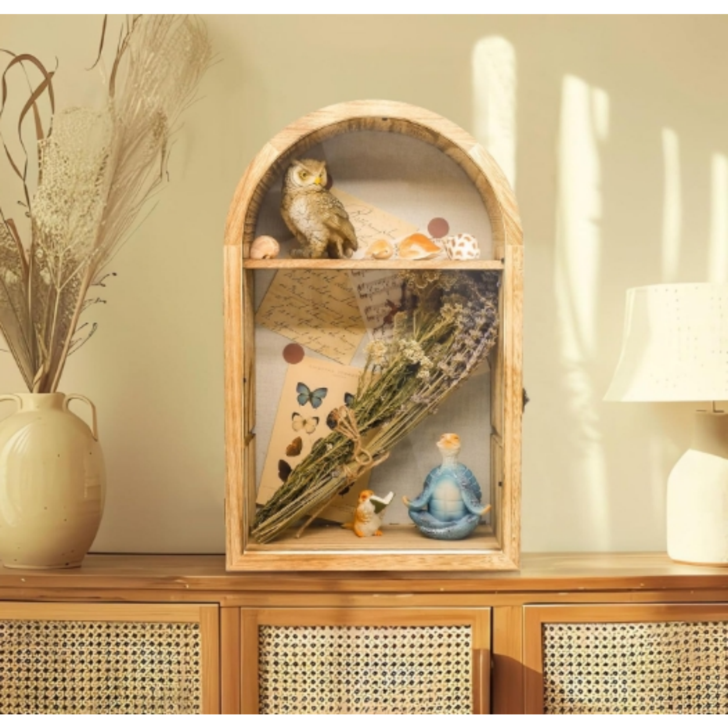 Personalize your display with ease. The removable and adjustable shelves let you create the perfect layout for items of any size. Change your exhibit whenever inspiration strikes thanks to the easy-access front design. From a rustic farmhouse to a modern loft, its versatile style complements any decor.