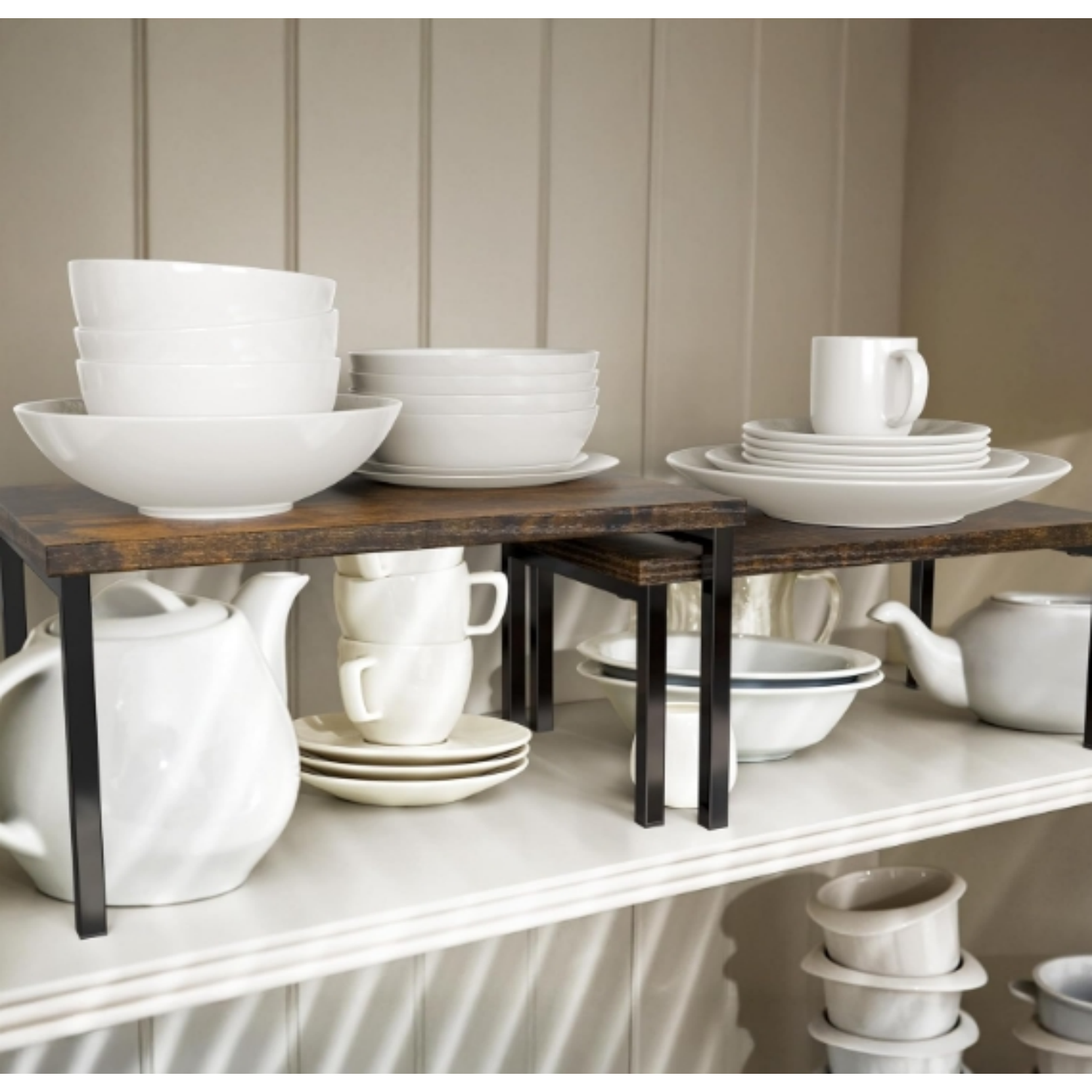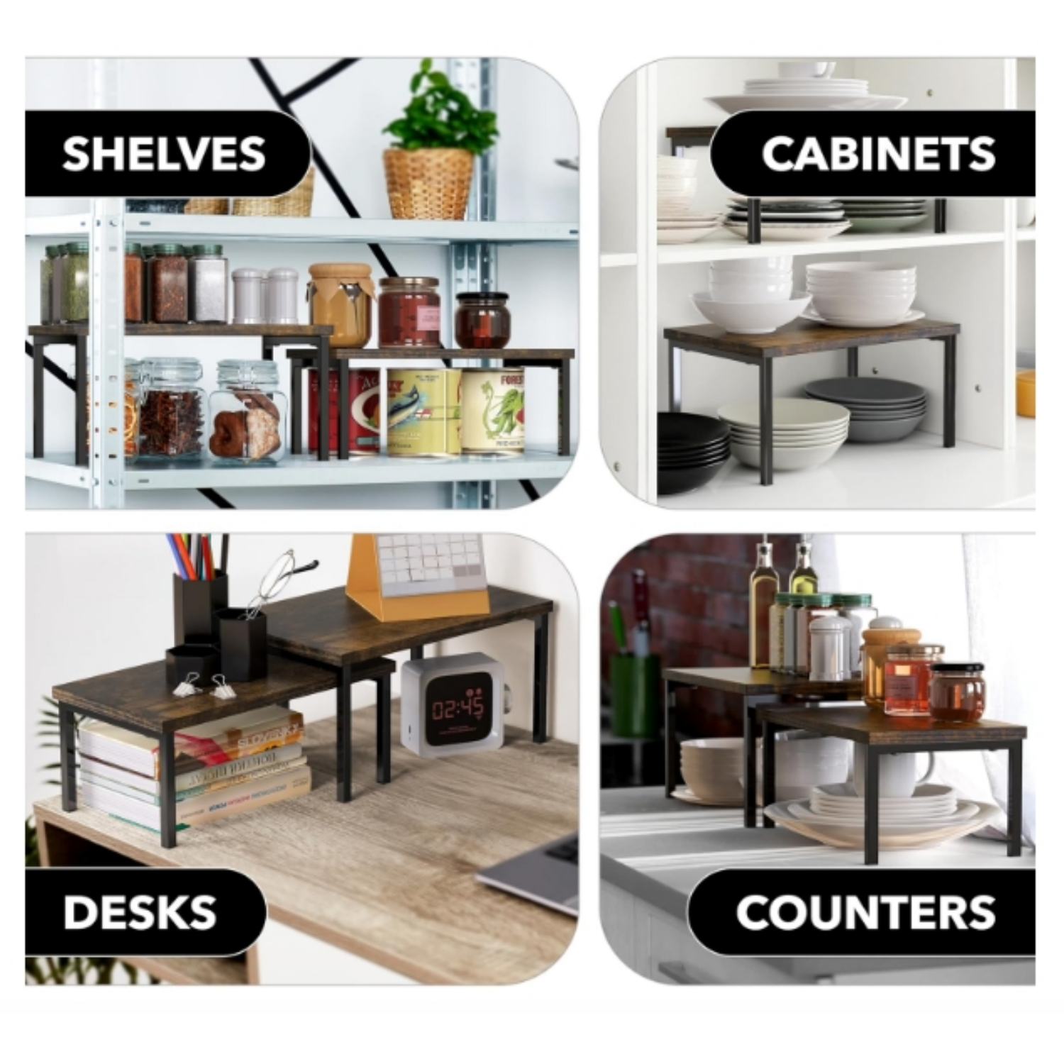 The Simple Houseware Expandable Stackable Cabinet and Counter Shelf Organizer with Wooden Surface is a game-changer for optimizing your storage. Whether you're organizing your kitchen cabinets, countertops, or pantry, this versatile shelving unit adapts to meet your needs.