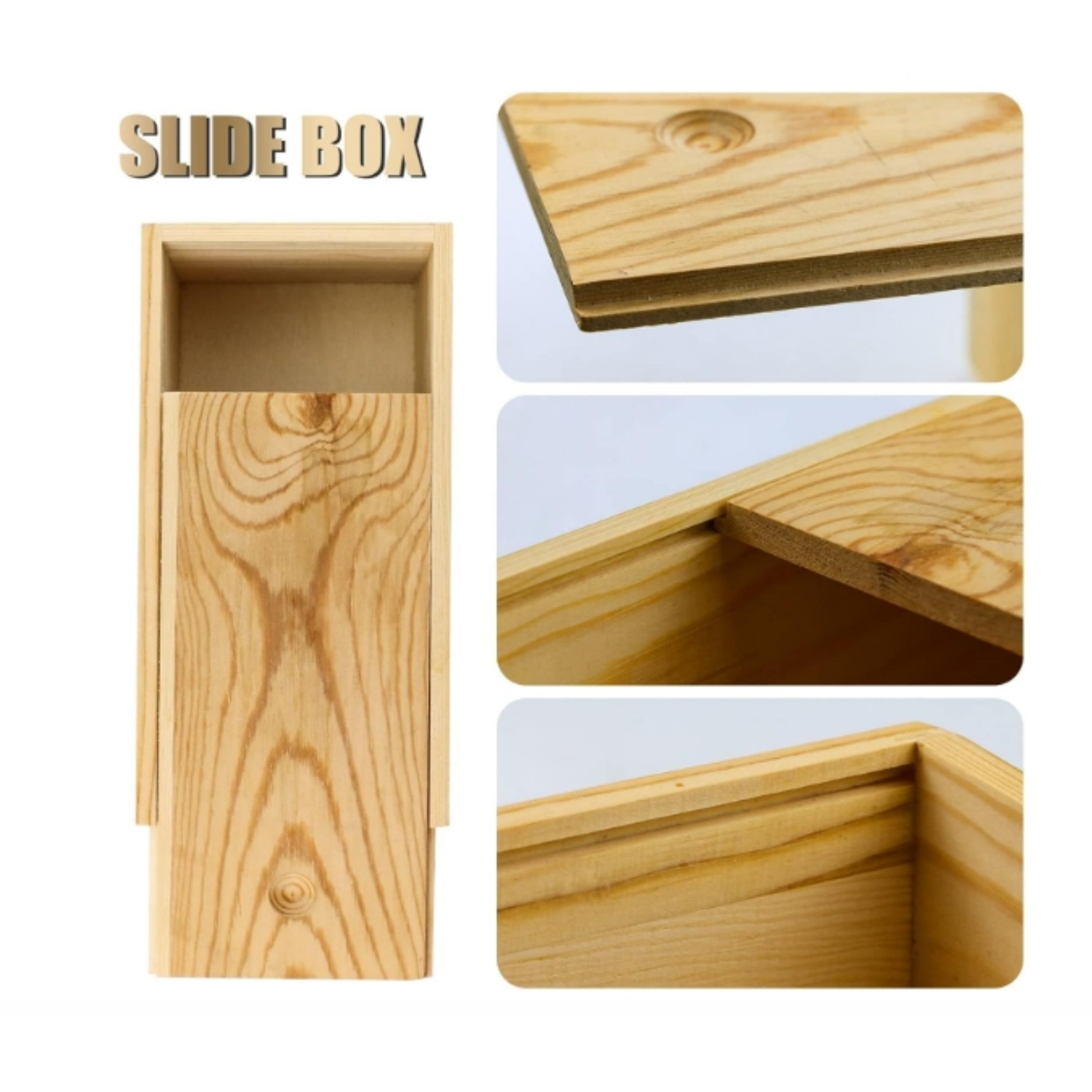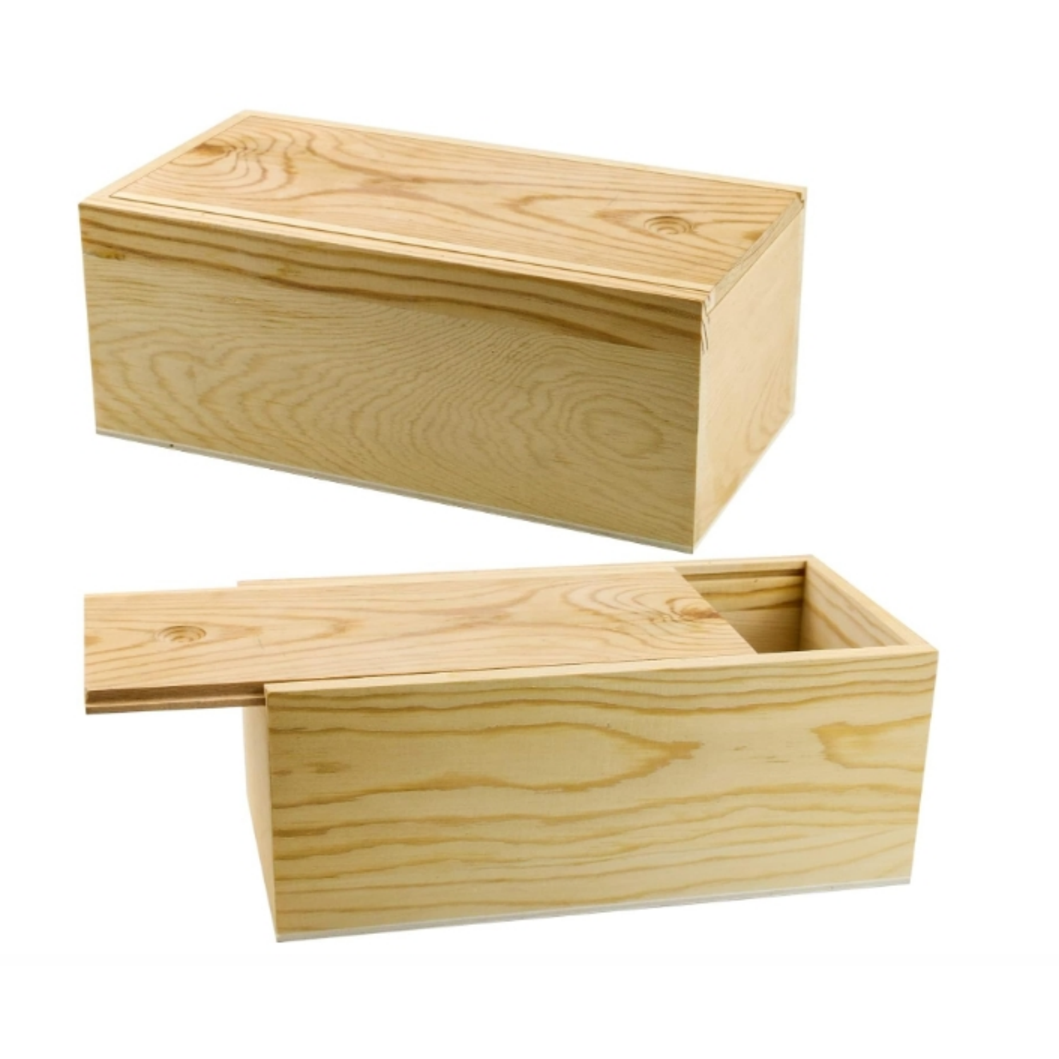 Unfinished Wood Storage Box with Slide Lid,Blank Natural Wood Case Container for Christmas