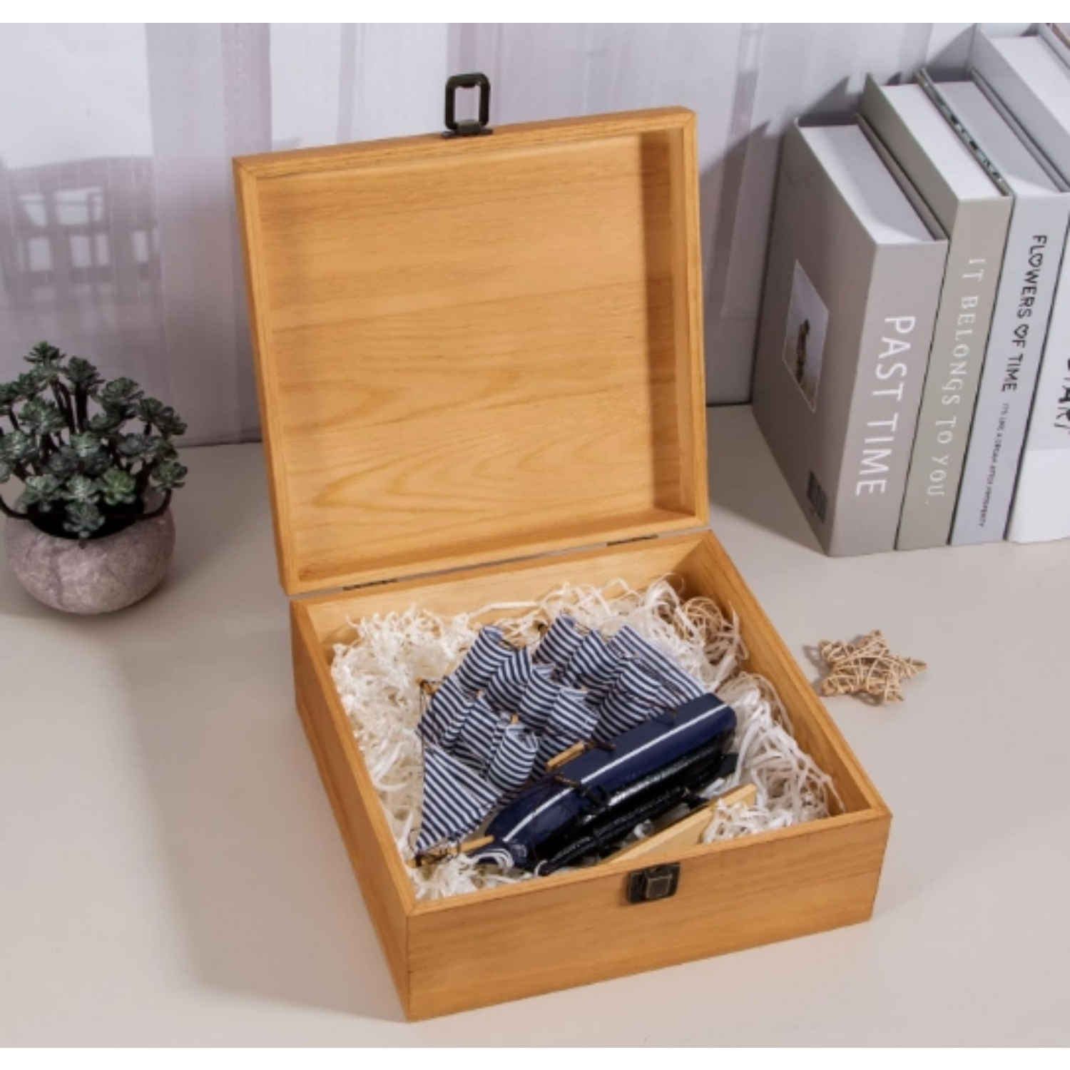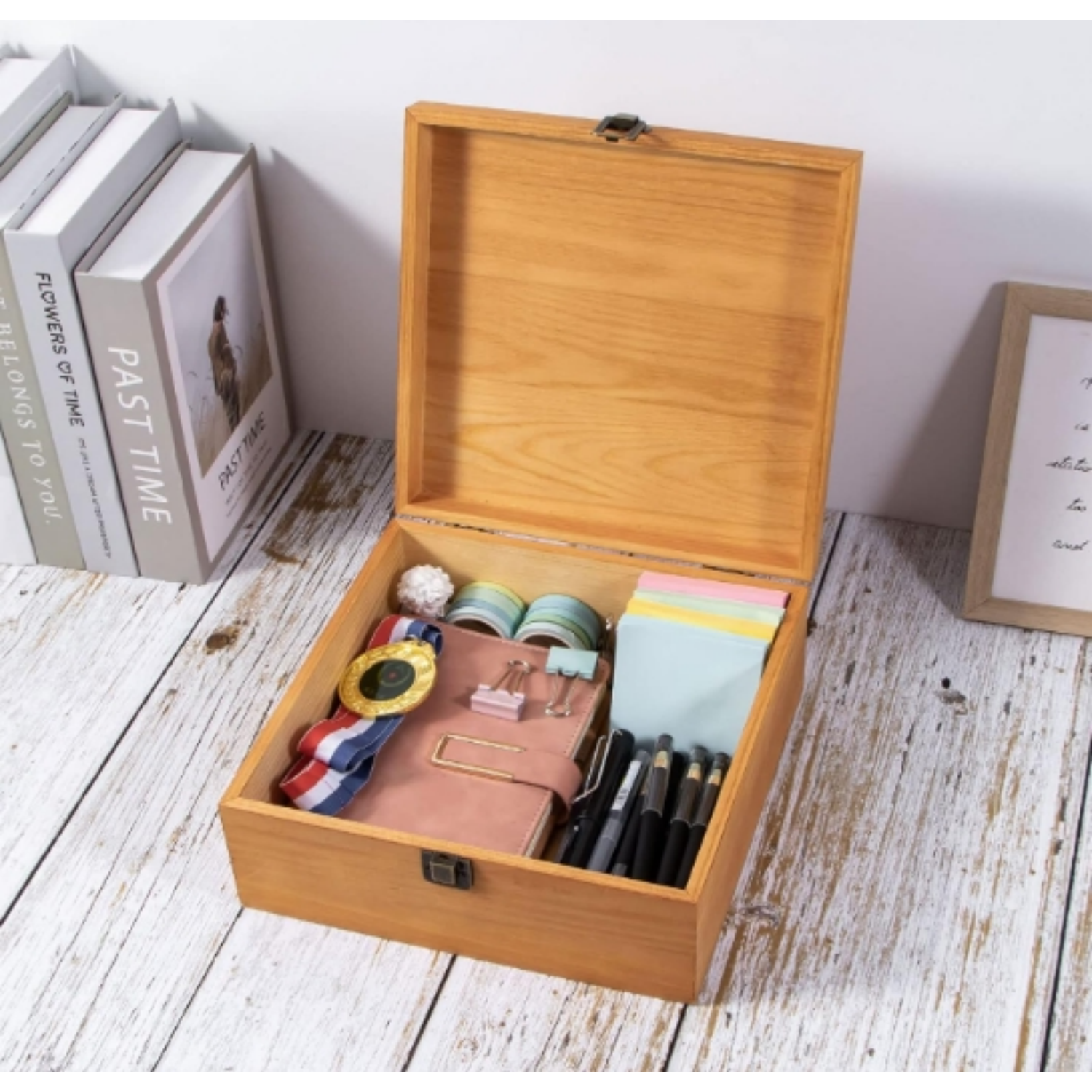 Discover the timeless appeal of our Vintage Wooden Storage Box, crafted from high-quality wood and designed with a hinged lid and front clasp for easy access and secure closure. This large storage box is perfect for keeping your crafts, treasures, or keepsakes organized. Its rustic finish adds a touch of warmth to any room, making it not only a practical storage solution but also a beautiful decorative piece. Whether you're looking to declutter your space or find the perfect gift for a loved one, this versatile wooden box is a charming addition to any home.