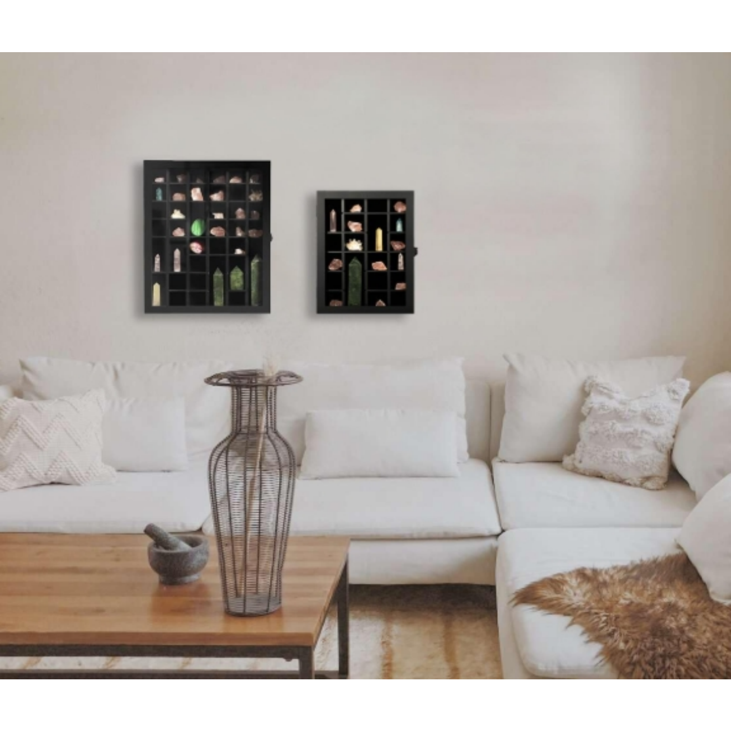Showcase your cherished crystal and mineral collection in style with our premium wooden display box. Designed specifically for collectors and spiritual practitioners, this organizer transforms your agates, opals, geodes, and raw stones into a stunning visual presentation. The natural wood grain adds a warm, earthy elegance to any room, studio, or retail space.