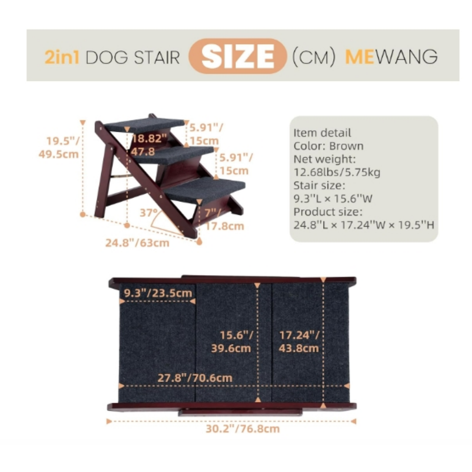 Help your furry friend climb safely and comfortably with the Wooden Pet Stairs. Whether it's a small puppy who can't reach the top of the couch or an older pet with mobility difficulties, these foldable stairs are the ultimate solution to give them the independence they need. Featuring a space-saving design and stable construction, this product is ideal for pets of all sizes and ages.