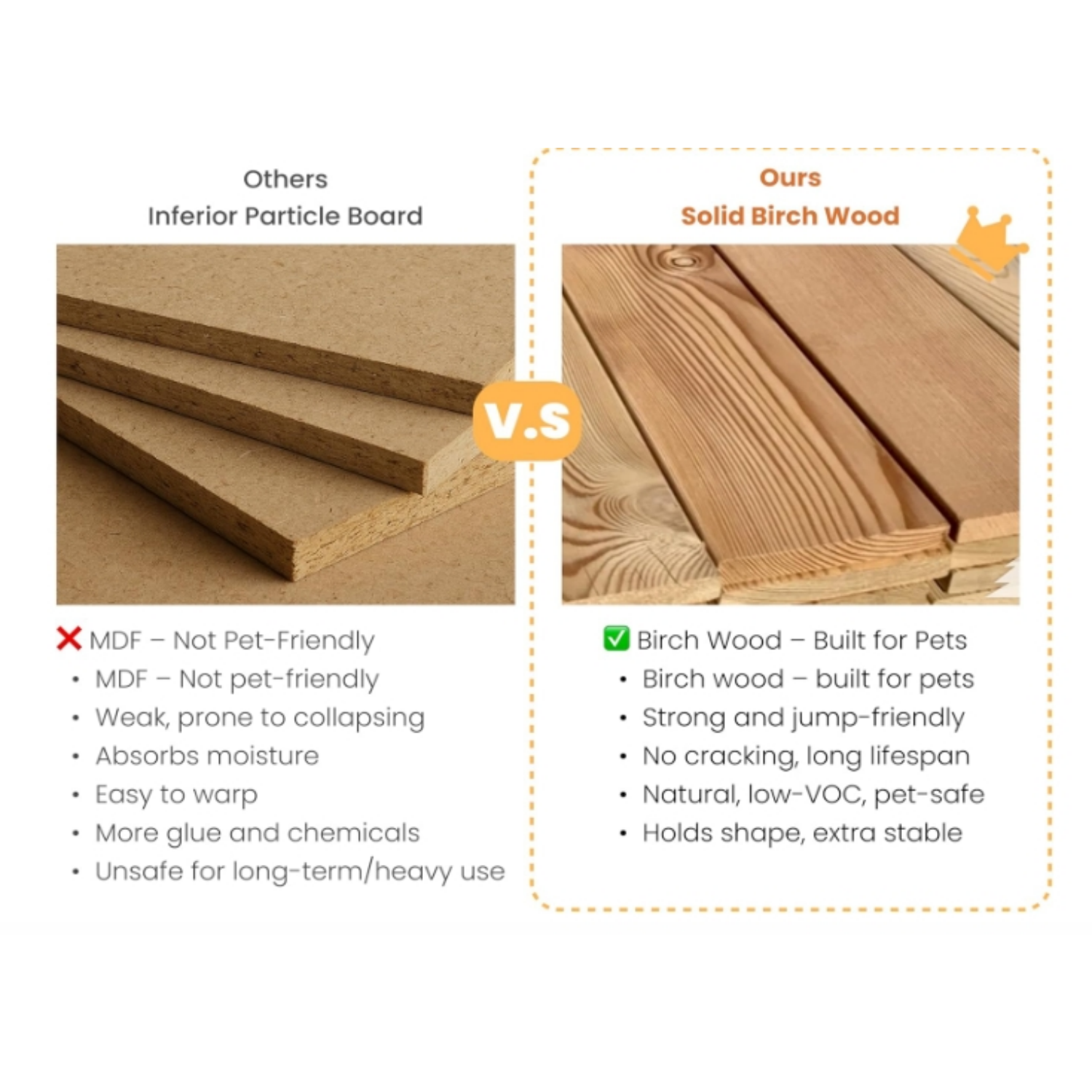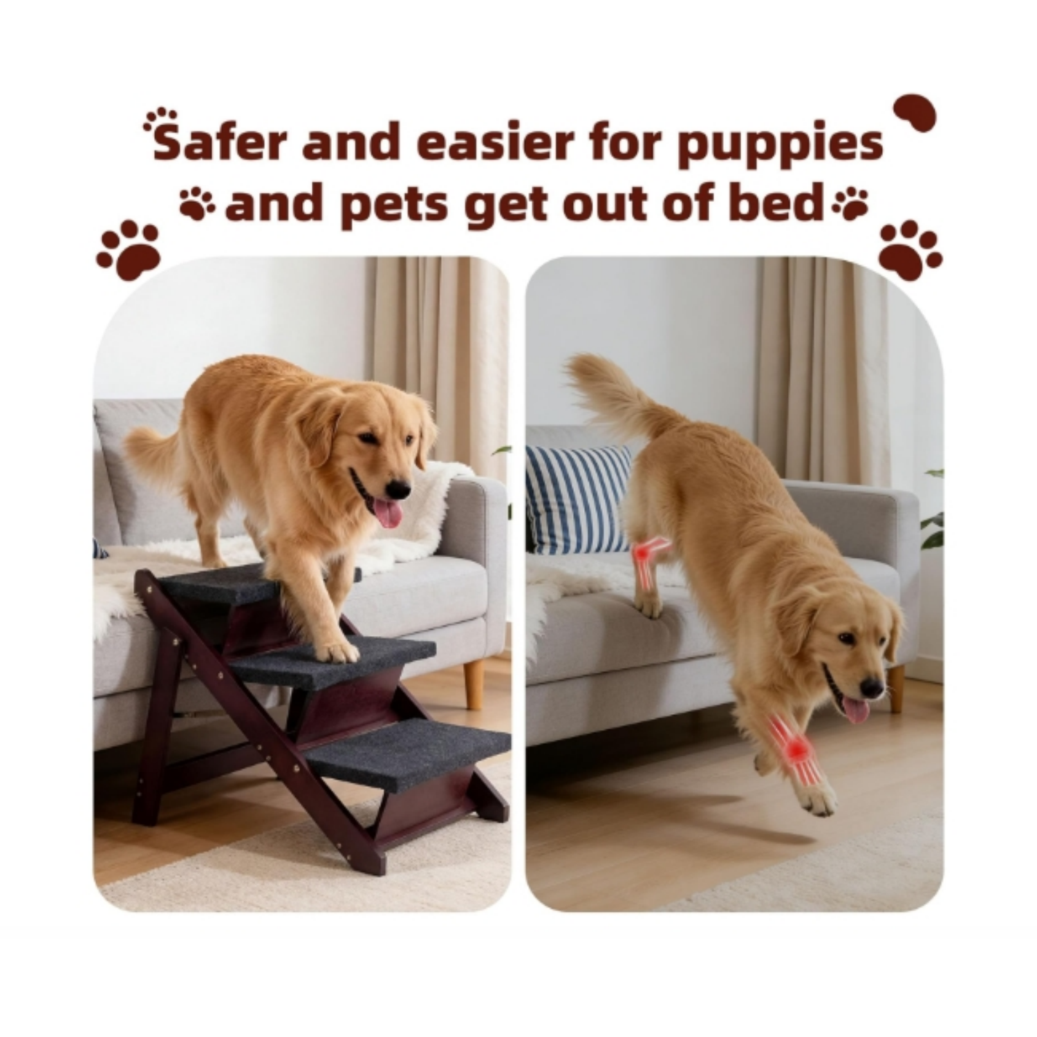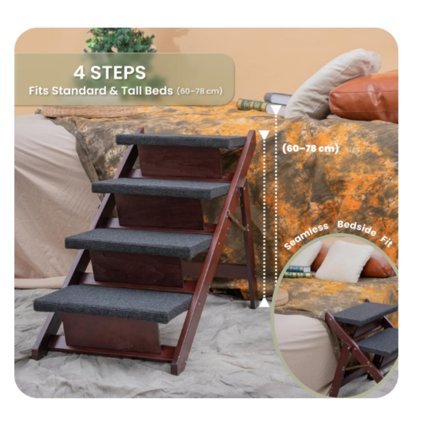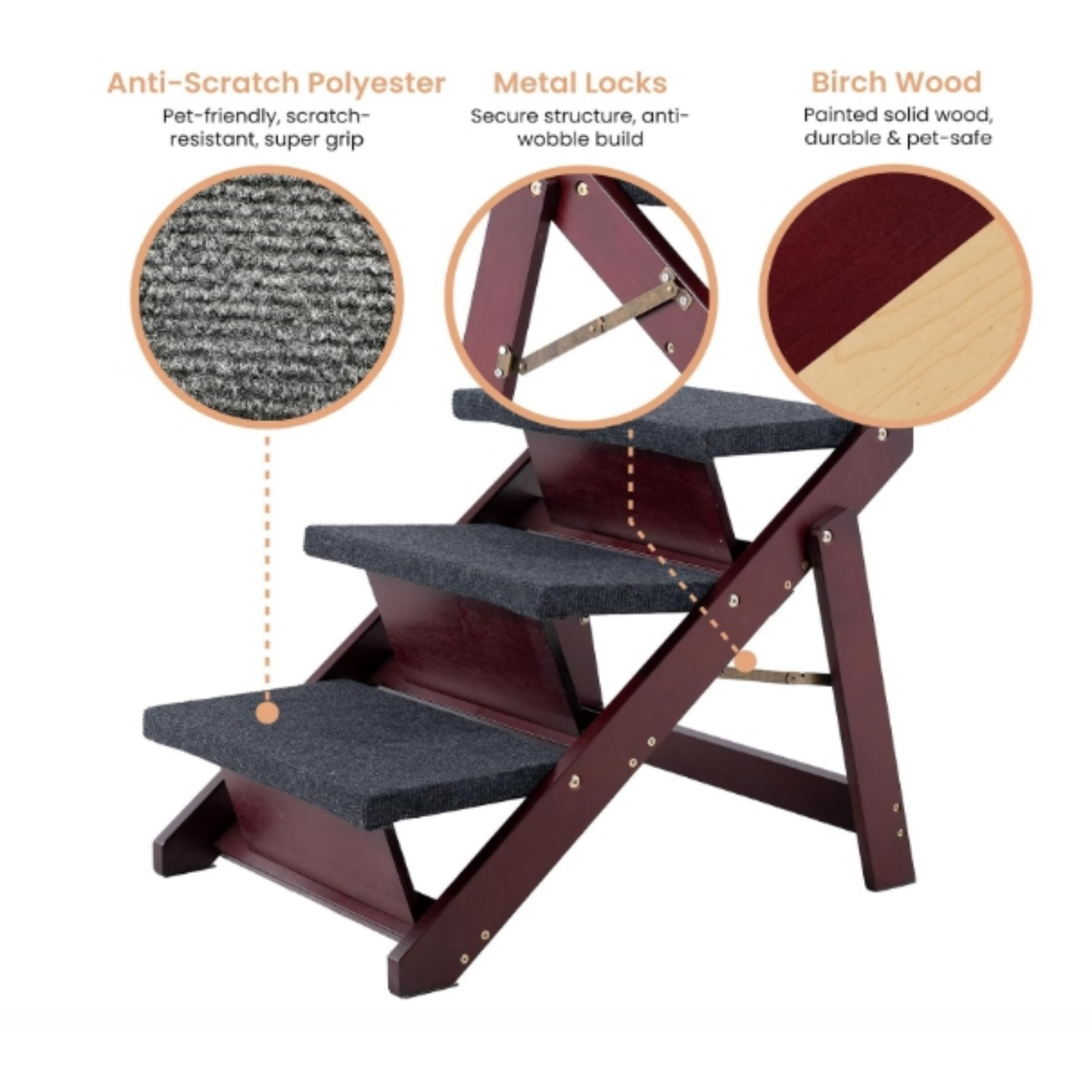 The Wooden Pet Stairs are foldable, meaning they can easily be tucked away when not in use, saving you valuable space. Whether you live in a compact apartment or simply prefer a clutter-free home, you'll love how quickly and conveniently you can store these pet steps. Their lightweight construction ensures you can transport them effortlessly from one room to another, adapting to your pet's needs in seconds.