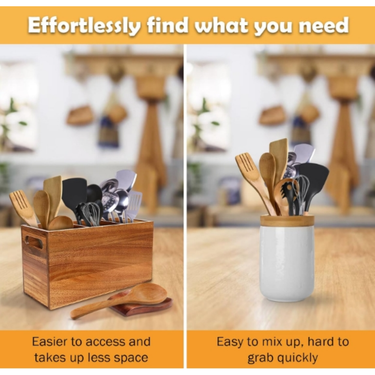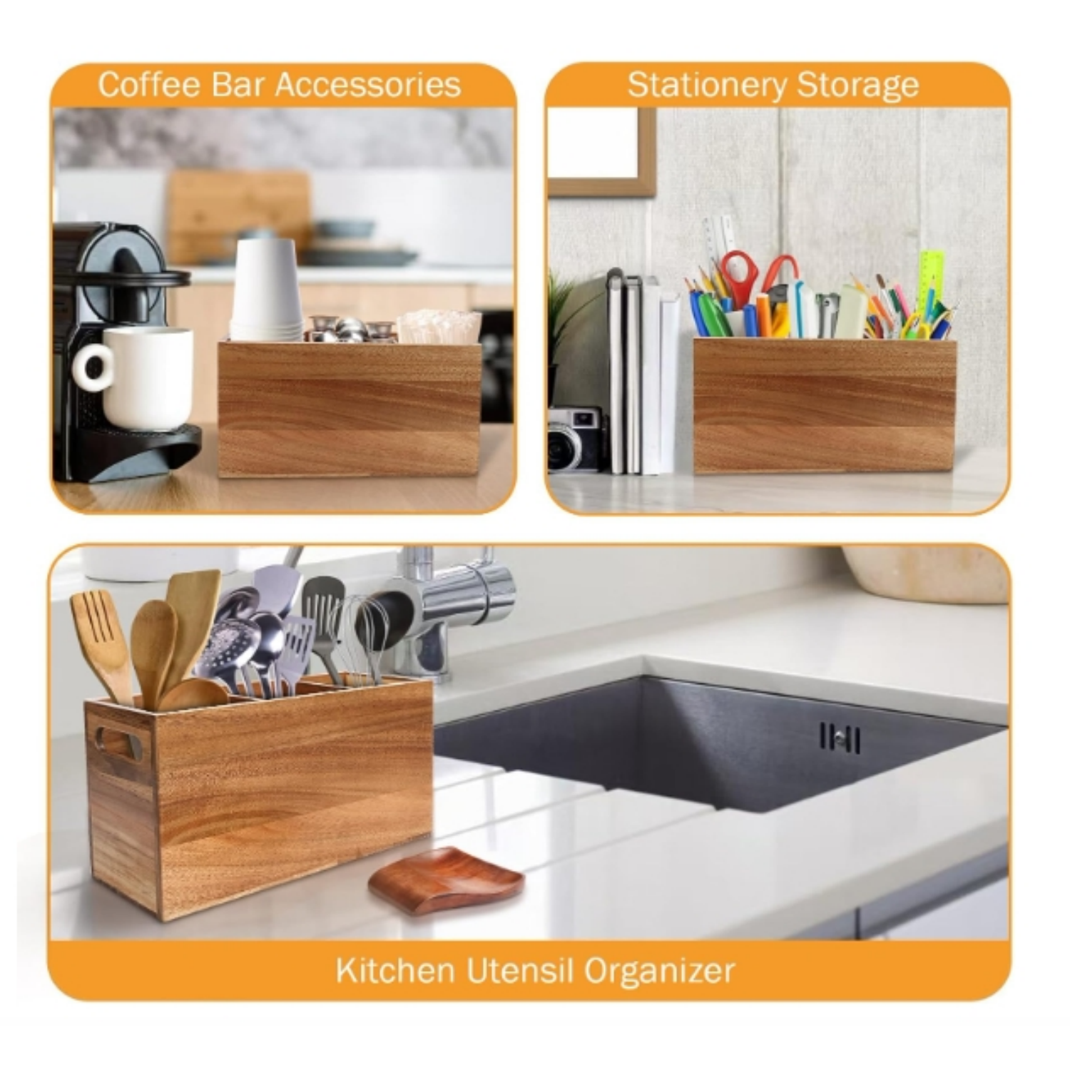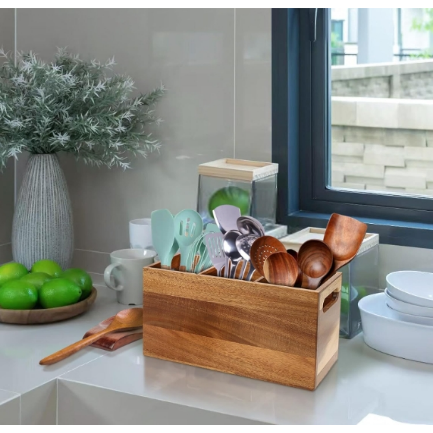 If you're searching for the perfect blend of beauty and utility, the Wooden Utensil Holder for Kitchen Counter is exactly what you need. Made from durable and naturally stunning Acacia wood, this utensil organizer is the ideal addition to any kitchen. With sleek craftsmanship and a warm, organic texture, it not only keeps your countertop tidy but also elevates your kitchen's aesthetic appeal.